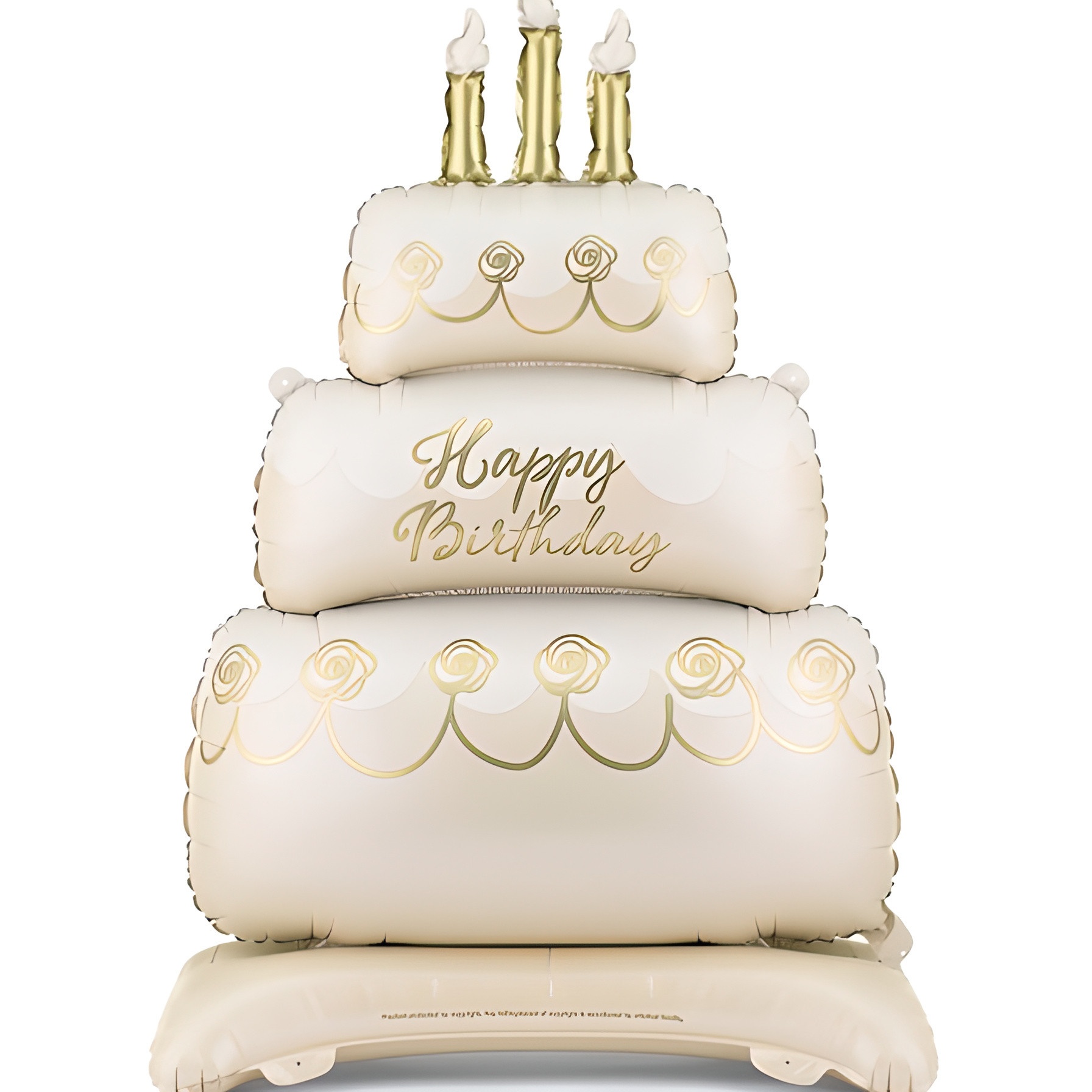 Happy Birthday taartballon 1,00 x 0,70 m met voet