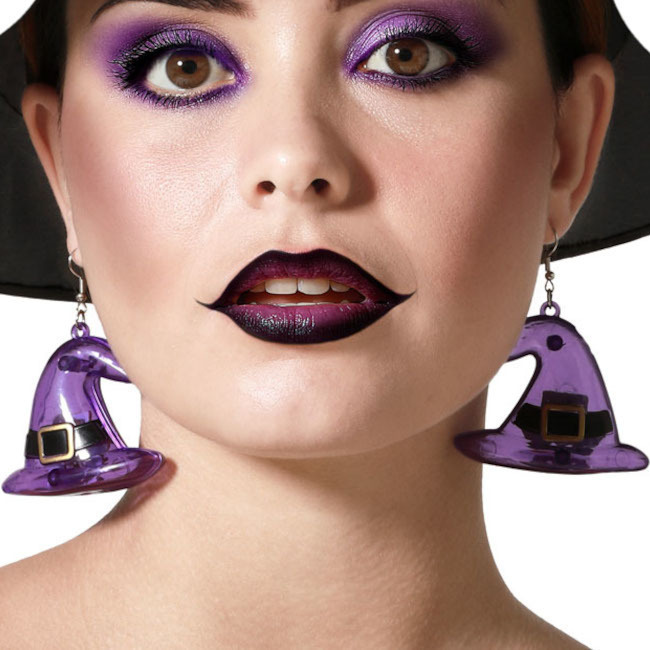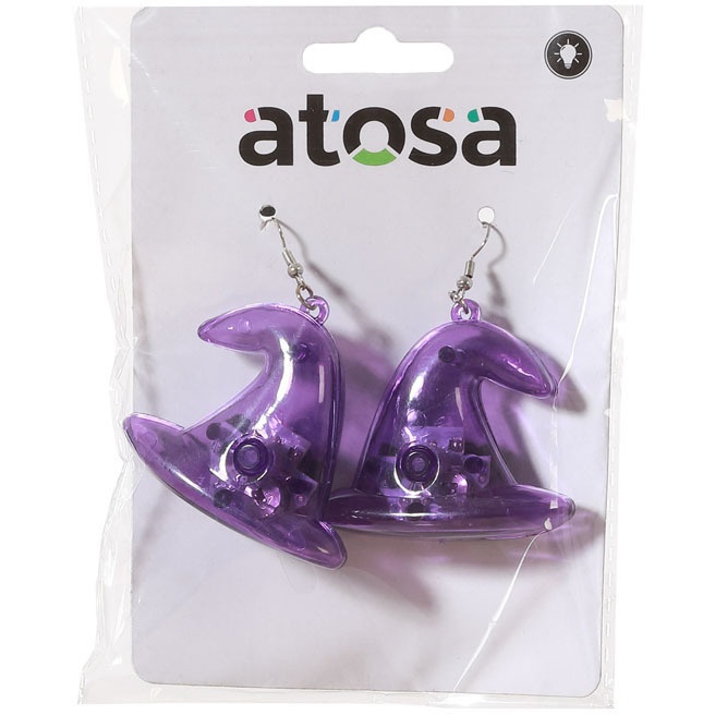 • Oorbellen in de vorm van een heksenhoed met ingebouwd LED-licht.