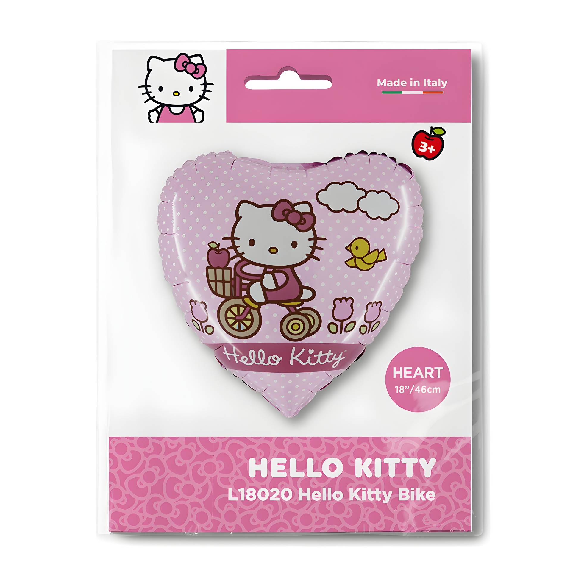 Hello Kitty hartvormige folieballon met fiets, 46 cm