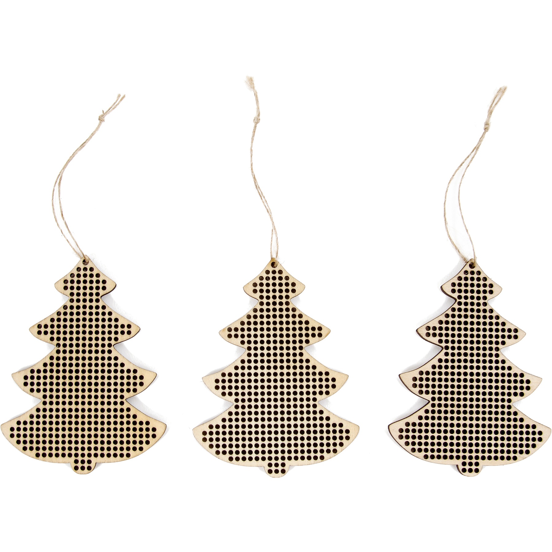 - Bevat 3 MDF-ornamenten met gaatjes en 3 jute koorden om op te hangen.