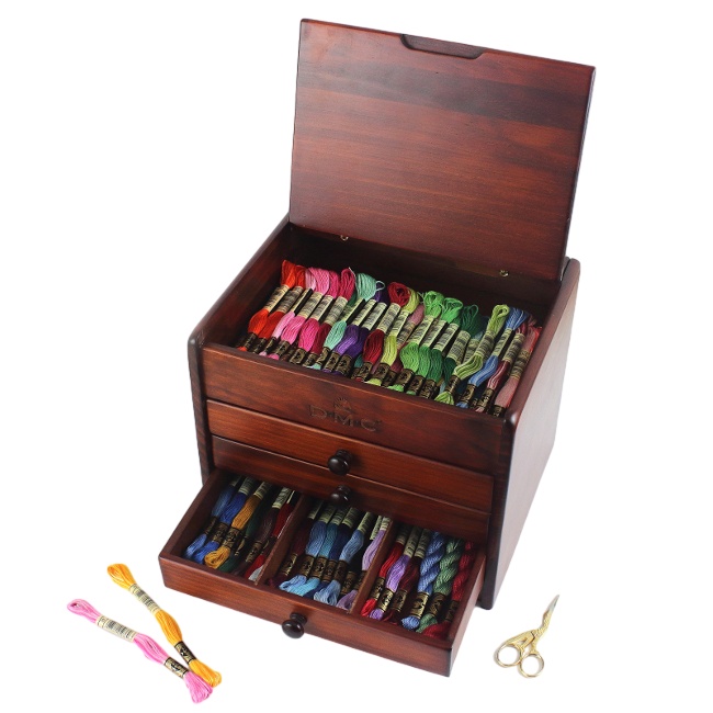Houten kastje met 120 strengen Mouliné draad - DMC