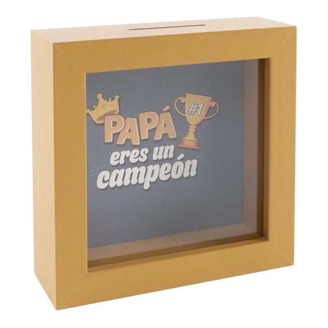 Houten spaarpot "Papa, je bent een kampioen"