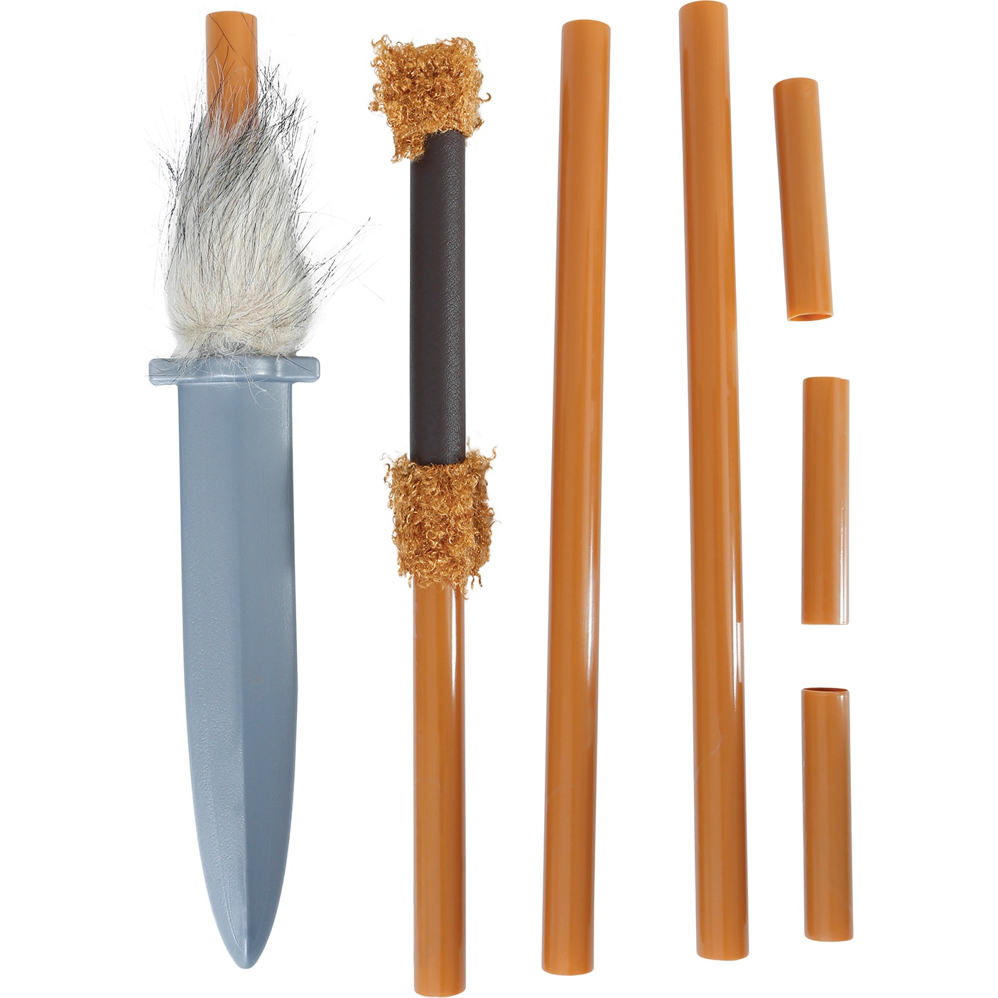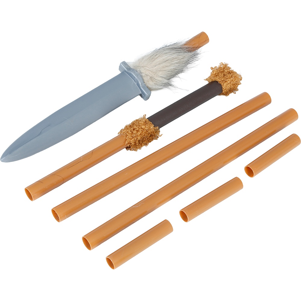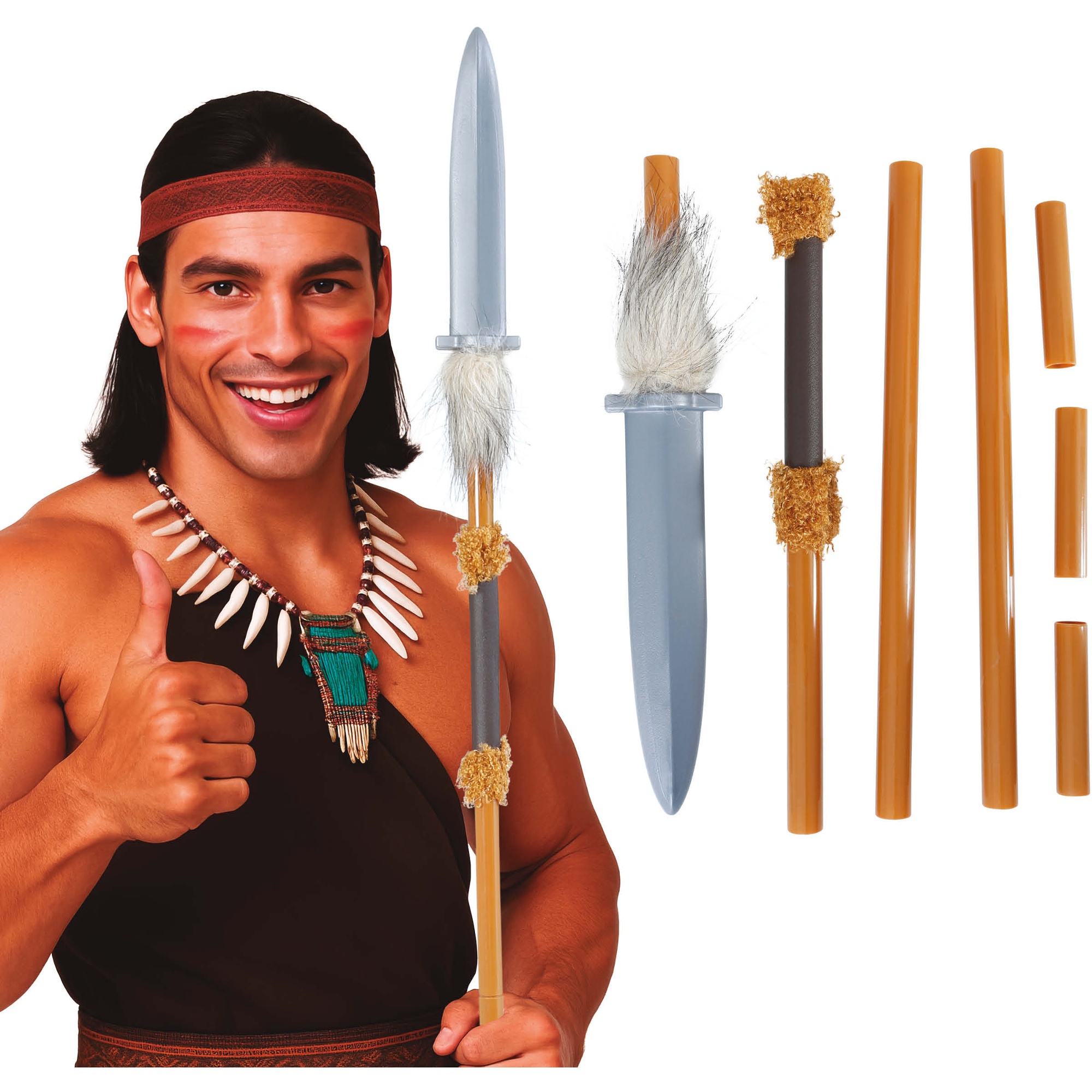 Demontabele lans in Indiaanse stijl, ontworpen als aanvulling voor kostuums en decoraties. De eenvoudige montage en het lichte ontwerp maken deze comfortabel om te dragen tijdens optochten, carnaval en themafeesten. Gemaakt van veilig PVC voor een realistische uitstraling zonder scherpe rand. Ideaal als accessoire bij traditionele outfits of toneelvoorstellingen.