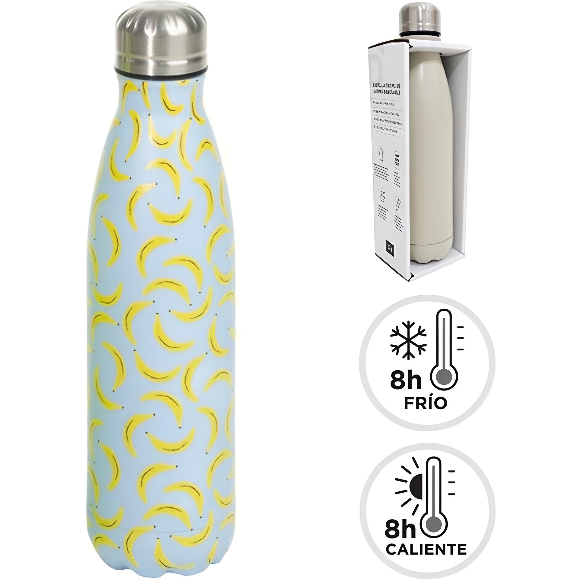 Dubbelwandige thermosfles die is ontworpen om je dranken langer op de ideale temperatuur te houden. De bananenprint geeft een vrolijke, zomerse touch die opvalt waar je hem ook meeneemt. Ergonomisch ontwerp en veilige sluiting voorkomen morsen en maken het meenemen eenvoudig. Perfect voor dagelijks gebruik, werk, sport of een uitstapje in de buitenlucht.