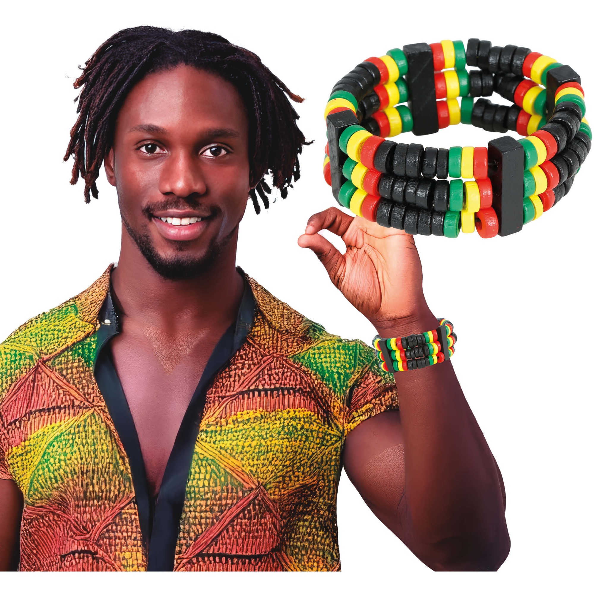 Handgemaakte rasta-armband die een authentiek en kleurrijk accent geeft aan je reggae- en urbanstijl. De iconische rasta-kleurcombinaties zorgen voor een opvallende look die zich makkelijk laat combineren met festival- of vrijetijdskleding. Het elastische, lichtgewicht ontwerp biedt een comfortabele pasvorm voor verschillende polsmaten. Perfect als accessoire voor concerten, themafeesten en buitenevenementen - geeft persoonlijkheid aan elke outfit.