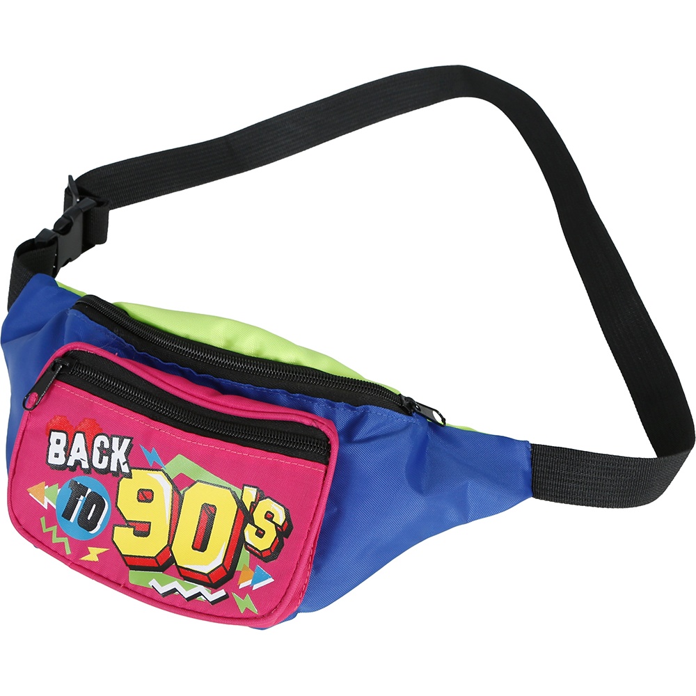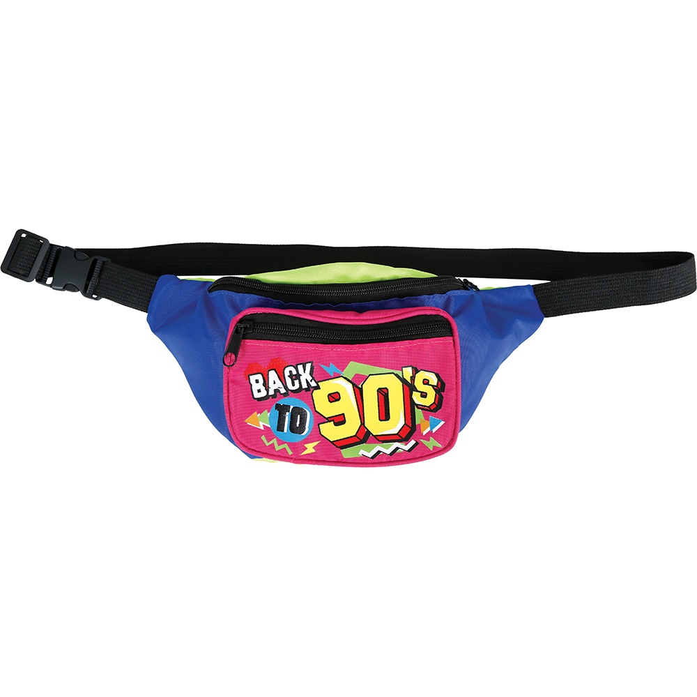 - Pet en heuptas in retrostijl 'Back to 90's' met neonkleuren die op de dansvloer opvallen.