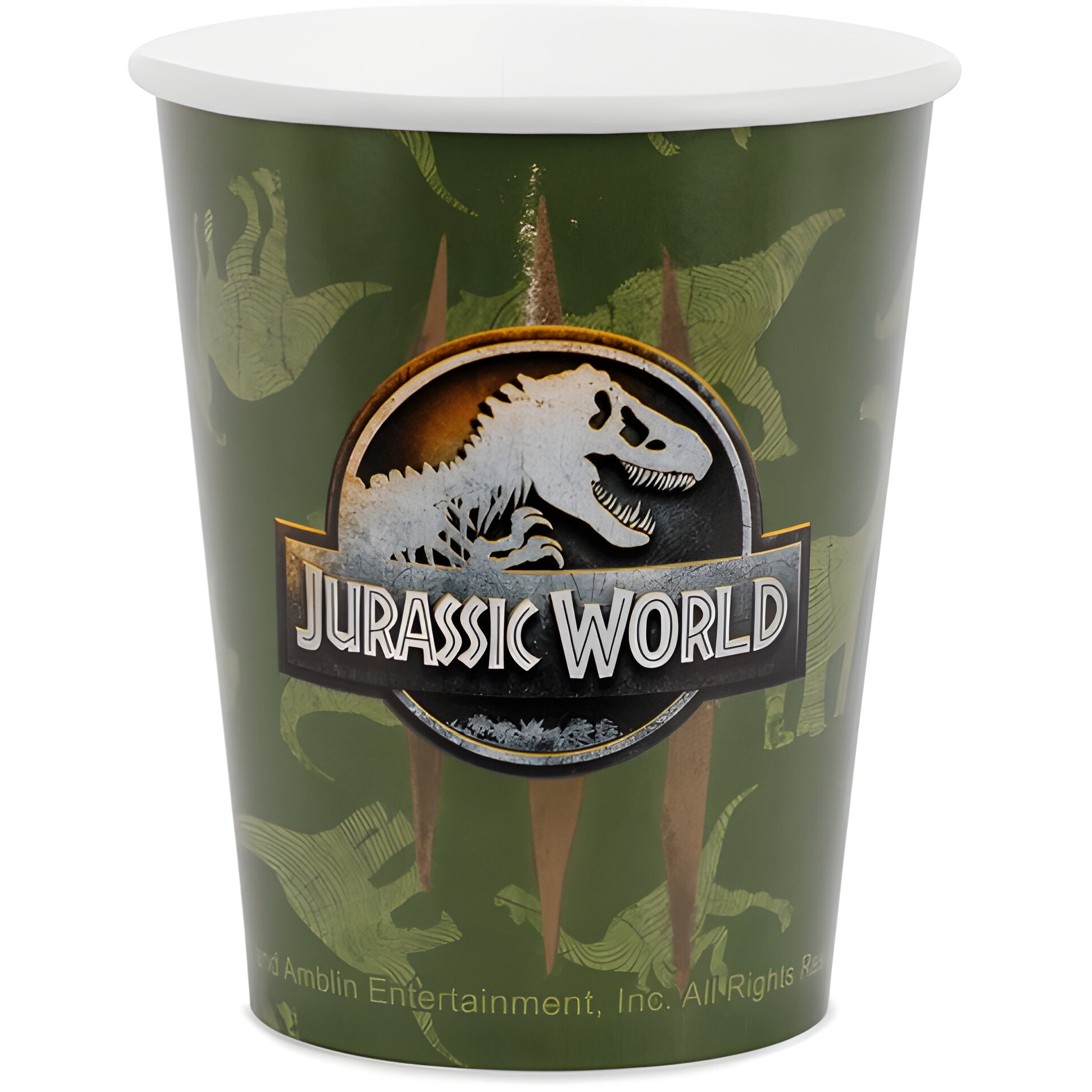 Wegwerpbekers met officieel Jurassic World-design in groen en dinosaurusopdruk. Inhoud ca. 250 ml (8,5 oz) en hoogte ca. 9 cm. Ontworpen voor kinderfeestjes: eenvoudig in gebruik en makkelijk weg te gooien. Niet geschikt voor warme dranken. Bevat de door Verordening (EU) 2020/2151 vereiste markeringen en informatieve etiketten in het Pools, Spaans, Lets, Ests, Portugees, Hongaars, Grieks, Kroatisch en Roemeens.