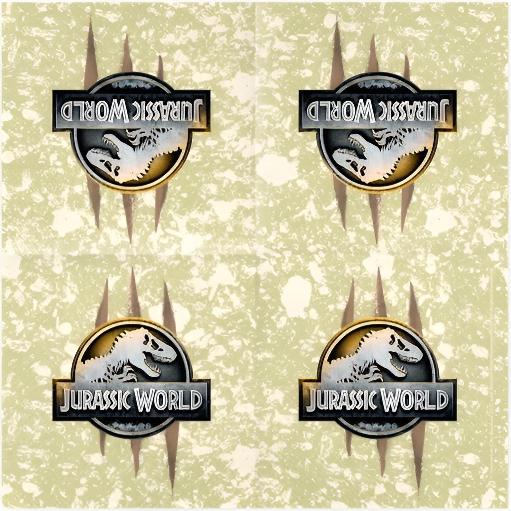 Papieren servetten met officiële Jurassic World-licentie en een opvallende dinosaurusprint in groene tinten.