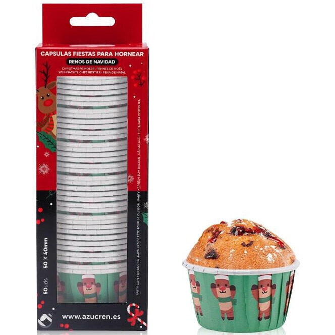 Kerst rendier cupcake capsules van 5 cm - 50 stuks