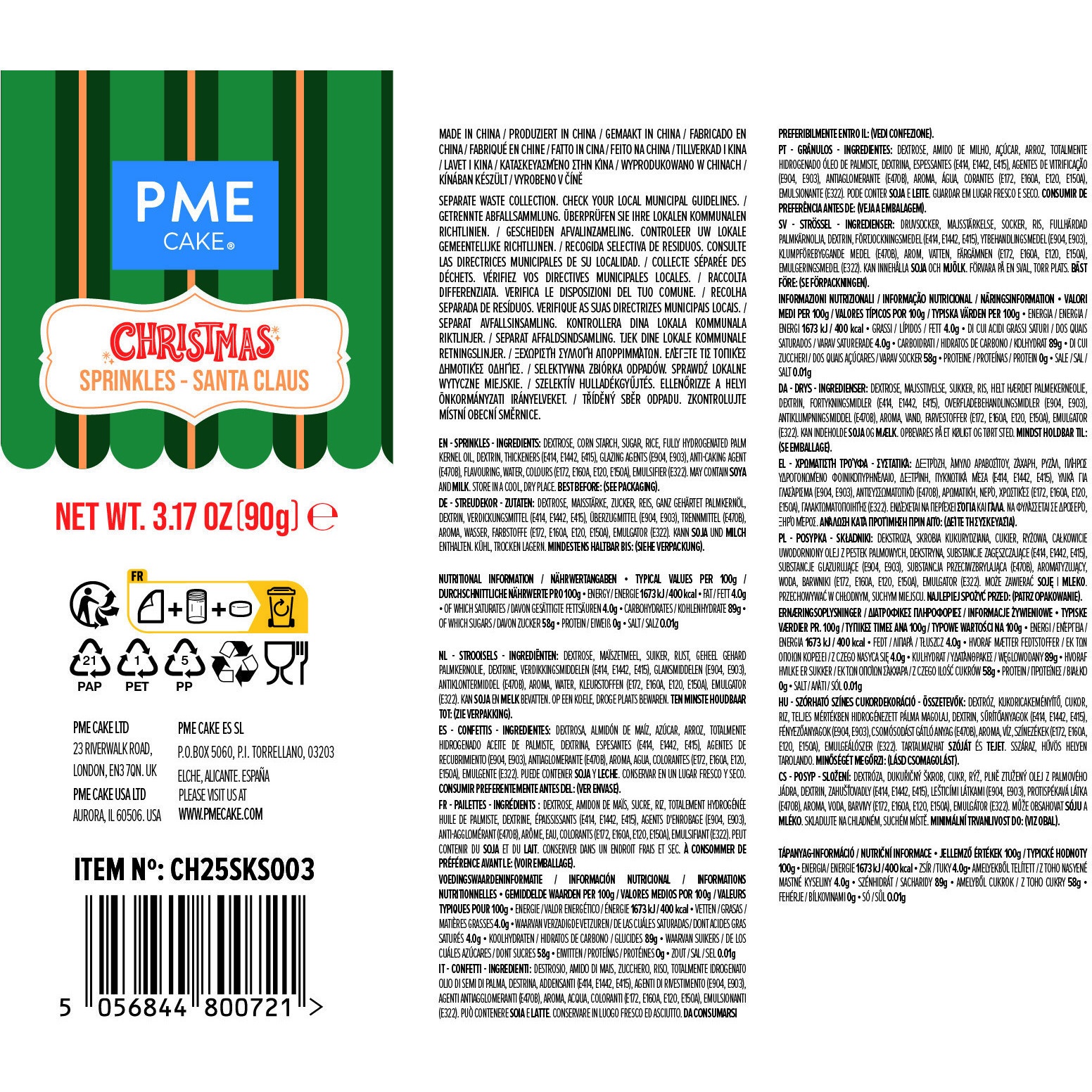 Ingrediënten: dextrose, maïszetmeel, suiker, volledig gehydrogeneerde palmkernelolie, verdikkingsmiddelen (E1442, E414, E415), dextrine, antiklontermiddel (E470B), glansmiddelen (E904, E903), water, aroma, kleurstoffen (E172, E160A, E120, E150A), emulgator (E322).