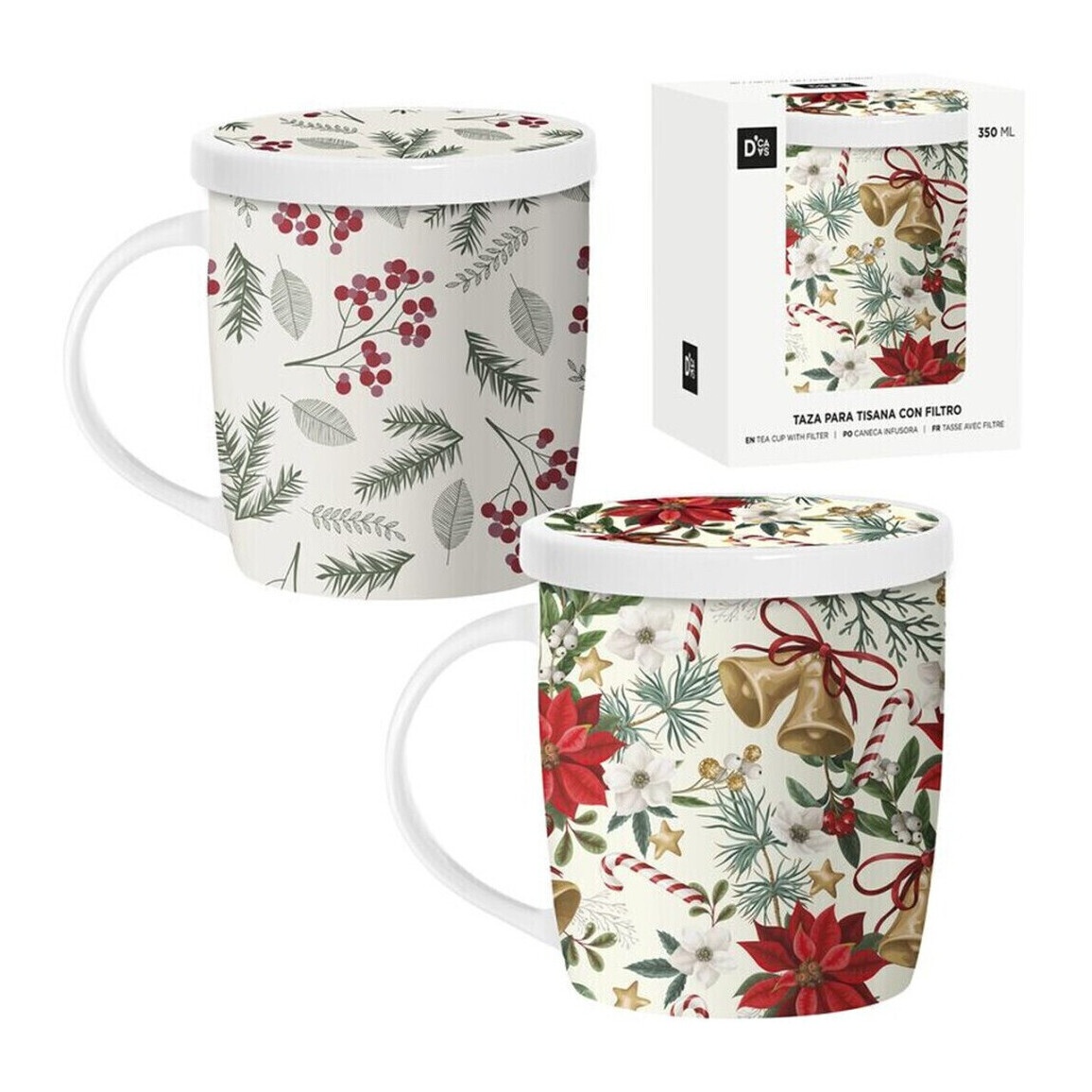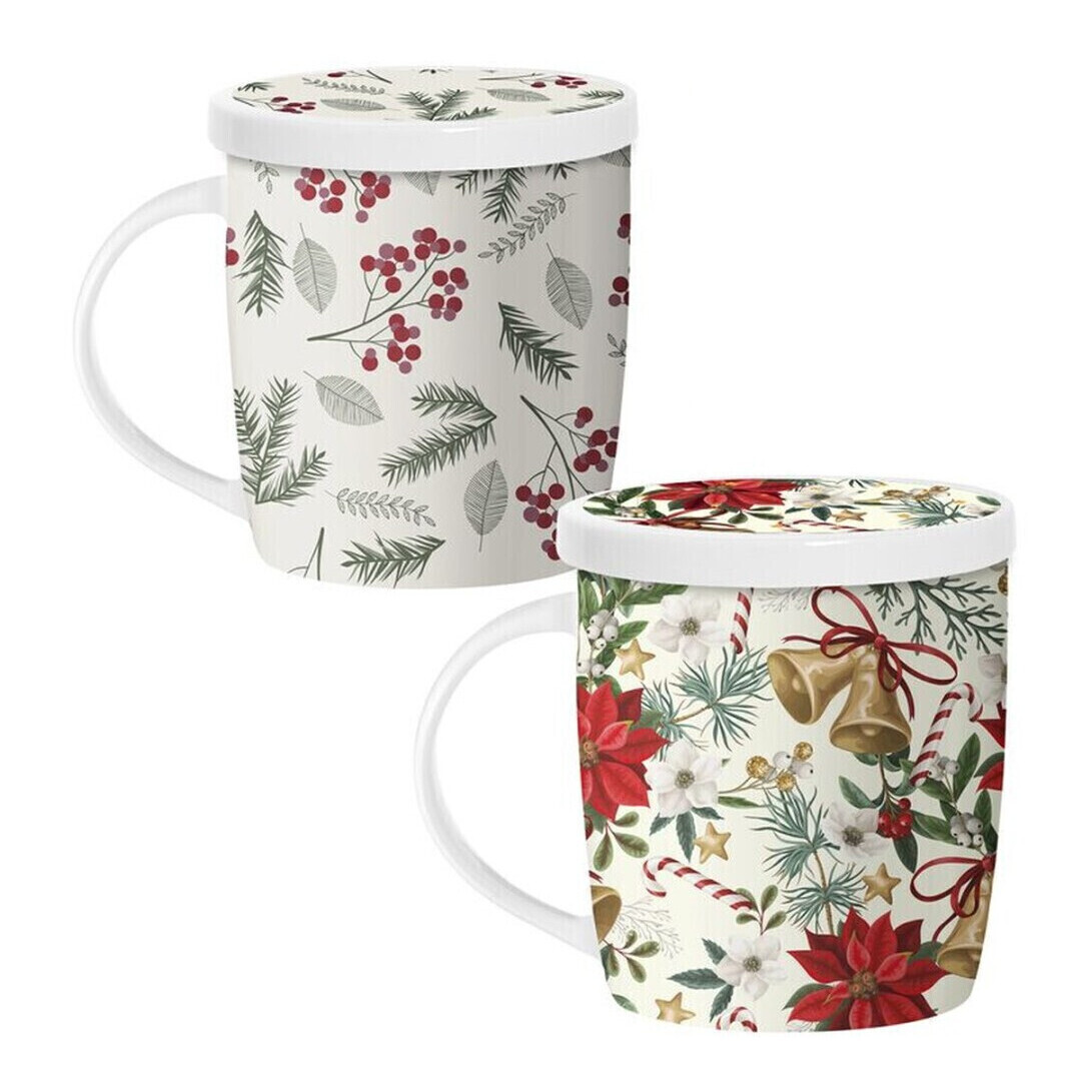 Kerstmis bloemenmok van 350 ml met thee filter - 1 stuk