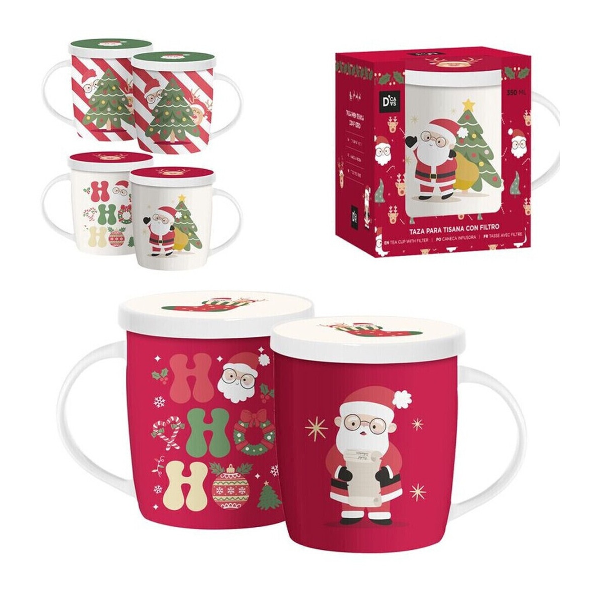 Kerstmok van 350 ml Hohoho met theefilter - 1 stuk