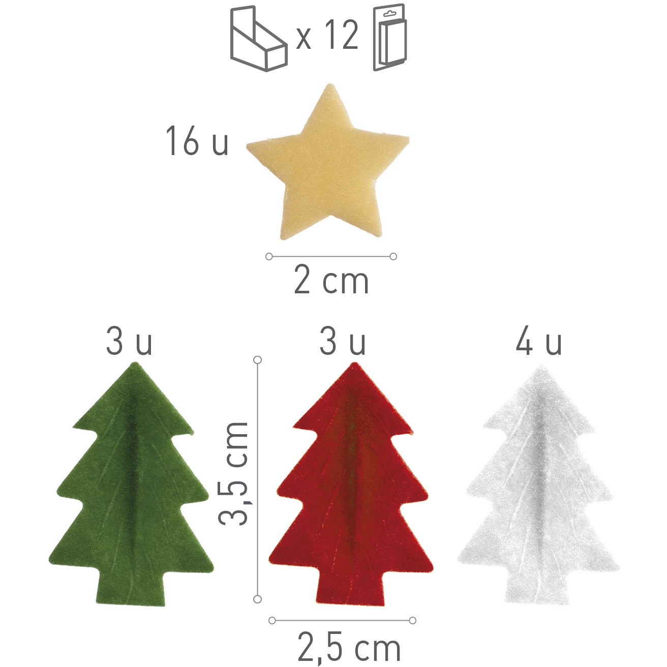 - Inclusief: 16 sterren, 3 groene dennen, 3 rode dennen en 4 witte dennen.