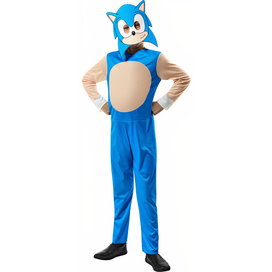 Een officieel gelicentieerd kostuum van het karakter Sonic uit de film The Hedgehog dat een masker omvat.