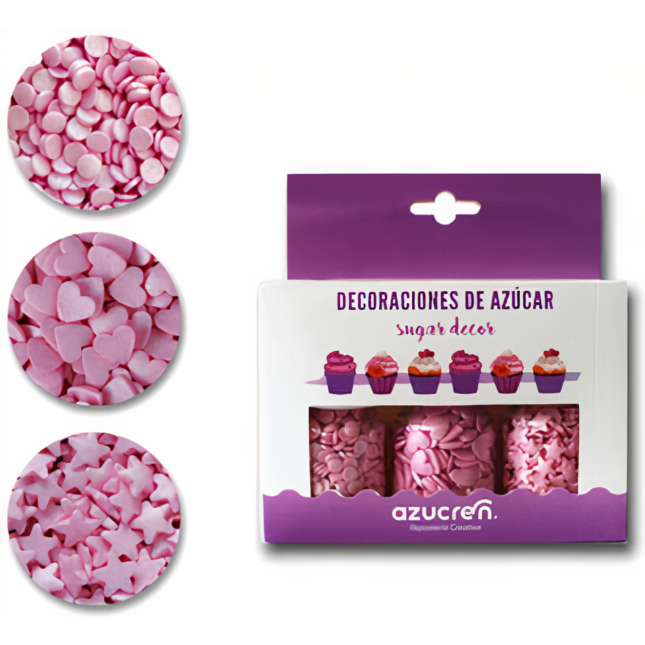 Kit met roze Valentijnsstrooisel - Azucren - 3 stuks
