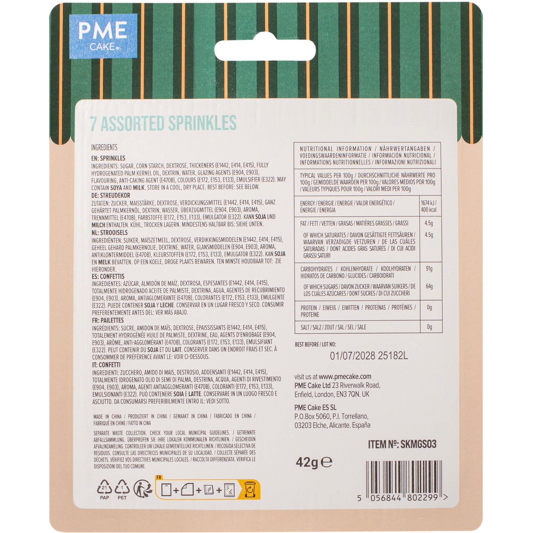 Kit van assorti sprinkles 7 soorten - PME - 42 gr