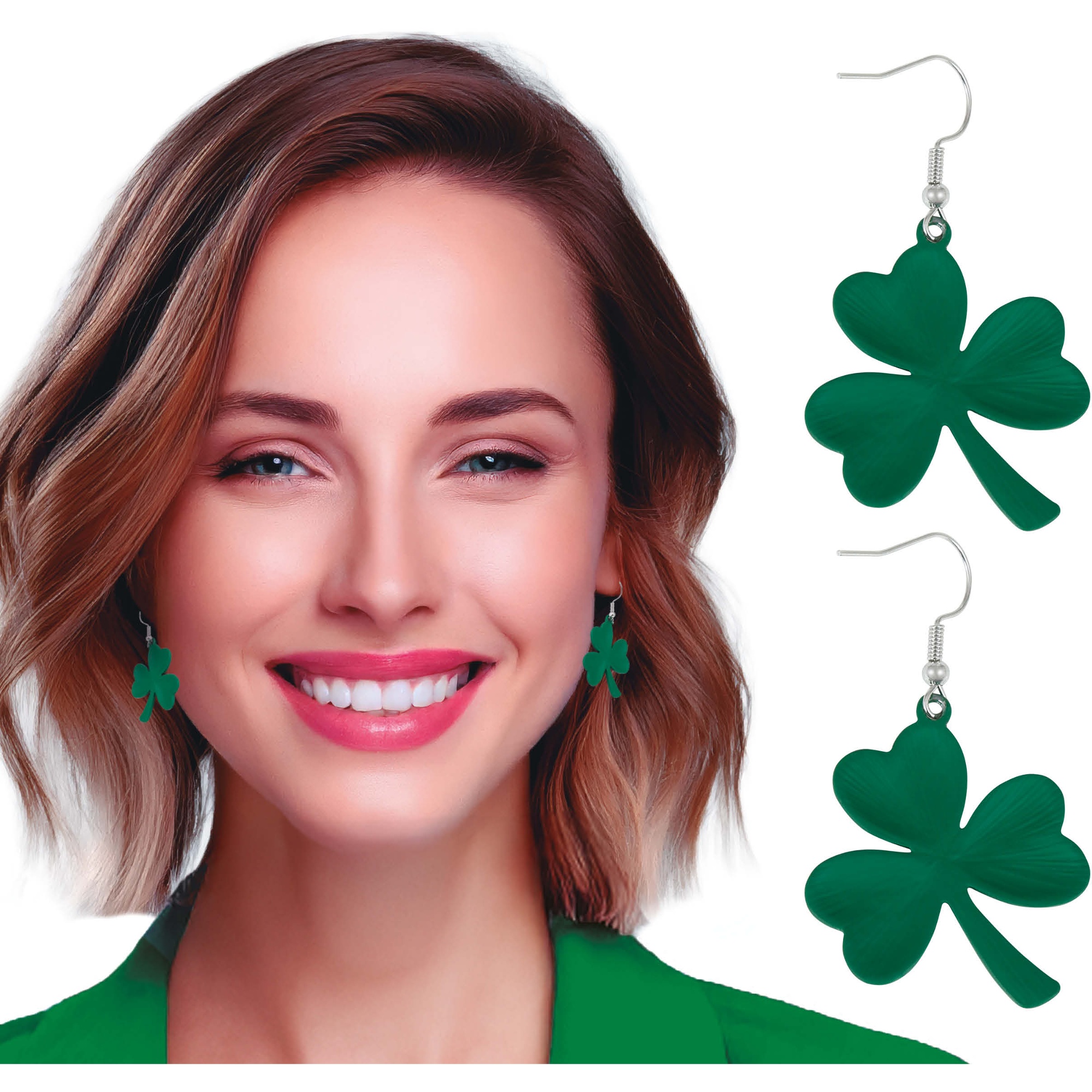 Klaveroorbellen St. Patrick - ideaal om je look voor St. Patrick's Day en andere themafeesten compleet te maken. Het groene klavervormige ontwerp geeft een speels en feestelijk accent. Gemaakt van licht PVC en voorzien van vishaakjes, waardoor ze comfortabel zijn om de hele avond te dragen. Perfect als detail bij evenementen en photocalls of als leuk cadeautje voor vriendinnen en familie. Worden per paar geleverd.