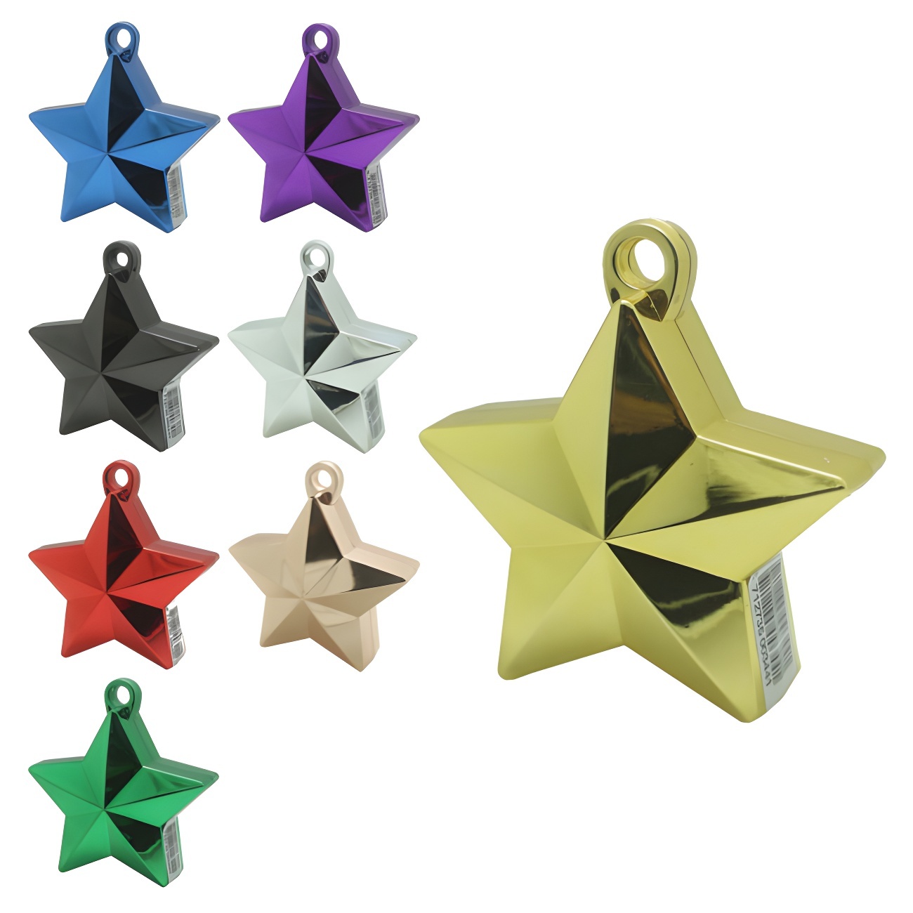 Ballongewicht van 150 gram in de vorm van een ster. Het is gemaakt van stevig plastic en heeft aan een van de punten een ring zodat je het lint kunt bevestigen en de ballon kunt vastmaken, zodat deze niet wegvliegt als je het met helium vult.