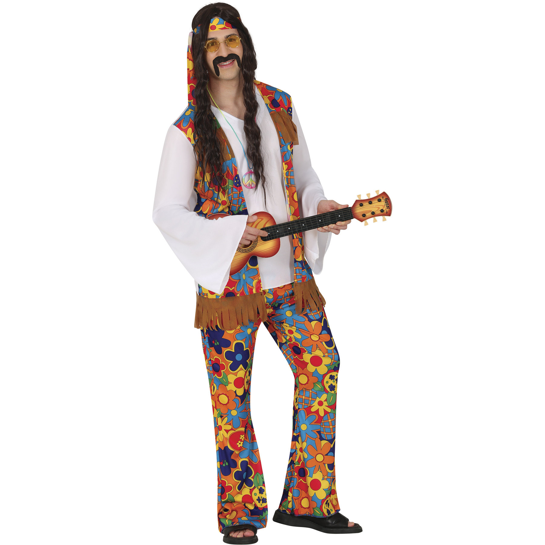 Hilarisch herenhippiekostuum waarmee je kunt veranderen in een beroemdheid van deze iconische beweging uit de jaren '60.