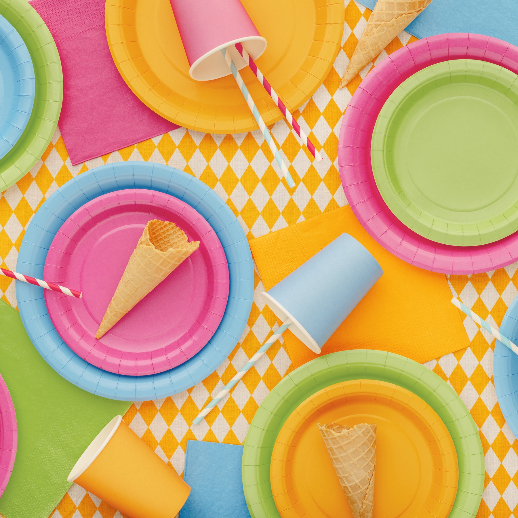 Kleurrijke kartonnen borden - 6 stuks van 23 cm