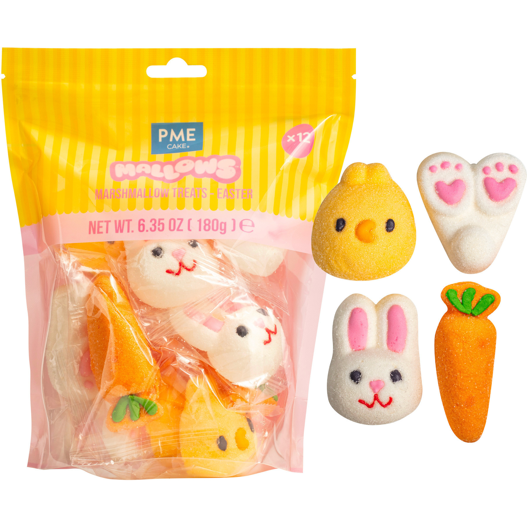 Konijn-, kuiken- en wortelmarshmallows - 12 stuks