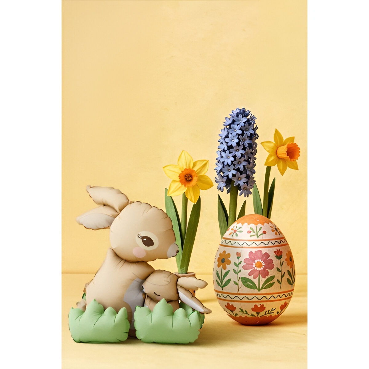 Staande ballon in konijnenvorm met een mix van zachte kleuren, ontworpen om je vieringen een lief en feestelijk accent te geven. Afmetingen voor opblazen ca. 74,5 x 71 cm; na opblazen ca. 51 x 60 cm. Alleen op te blazen met lucht. Staande uitvoering die uitstraling en charme toevoegt aan tafels, hoekjes en photobooths.