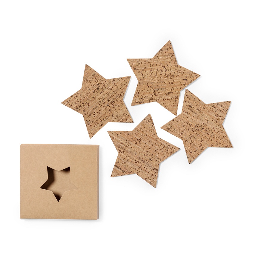 - Set van 4 onderzetters in de vorm van een ster, gemaakt van natuurkurk.