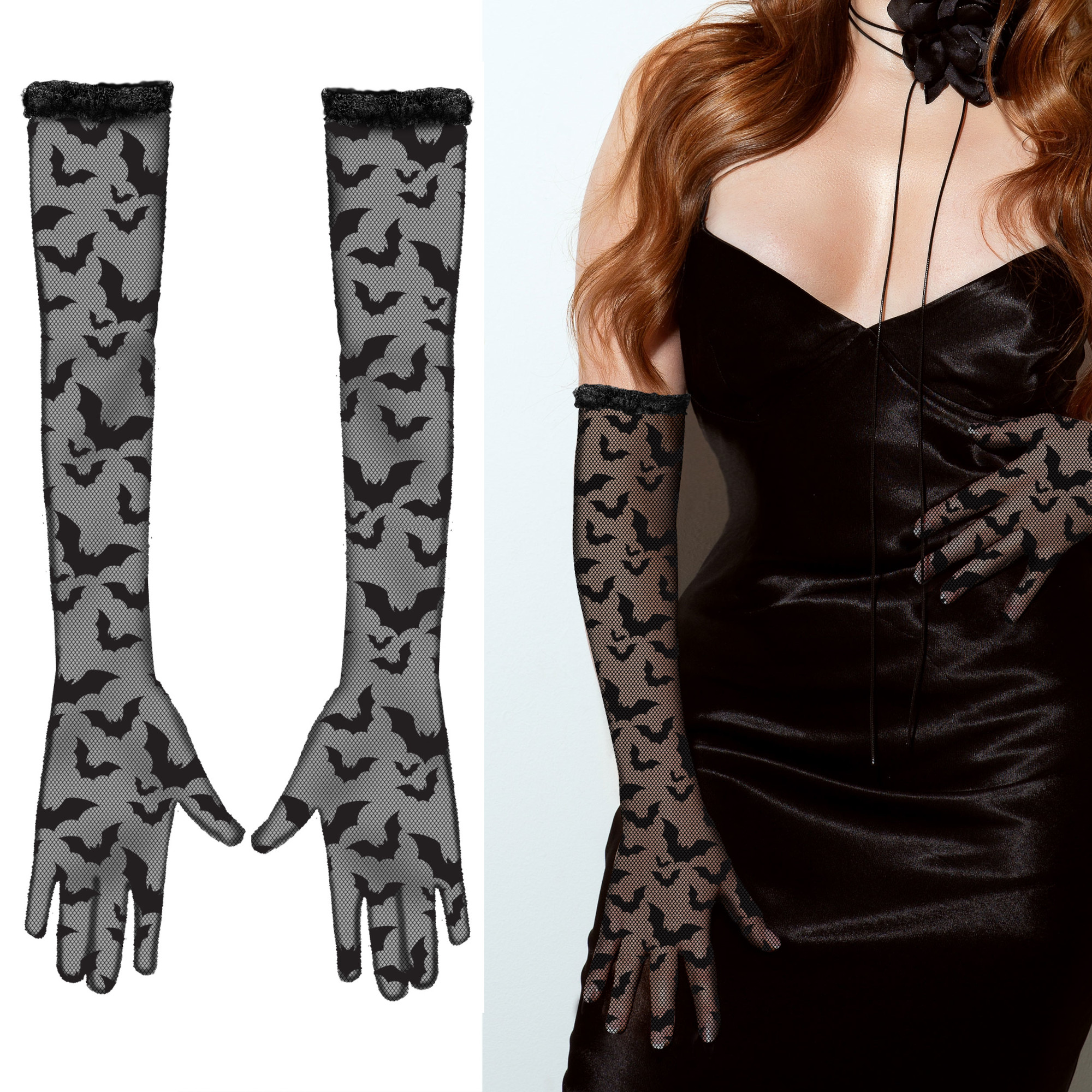 Lange handschoenen met zwarte vleermuizen van 38 cm