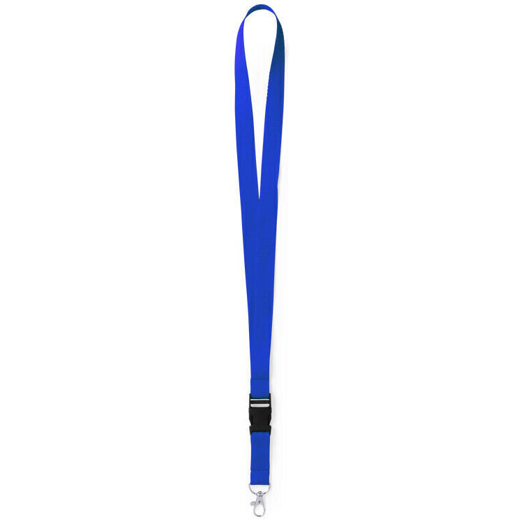 - Lanyard van stevig polyester met multifunctionele gesp en metalen haak.