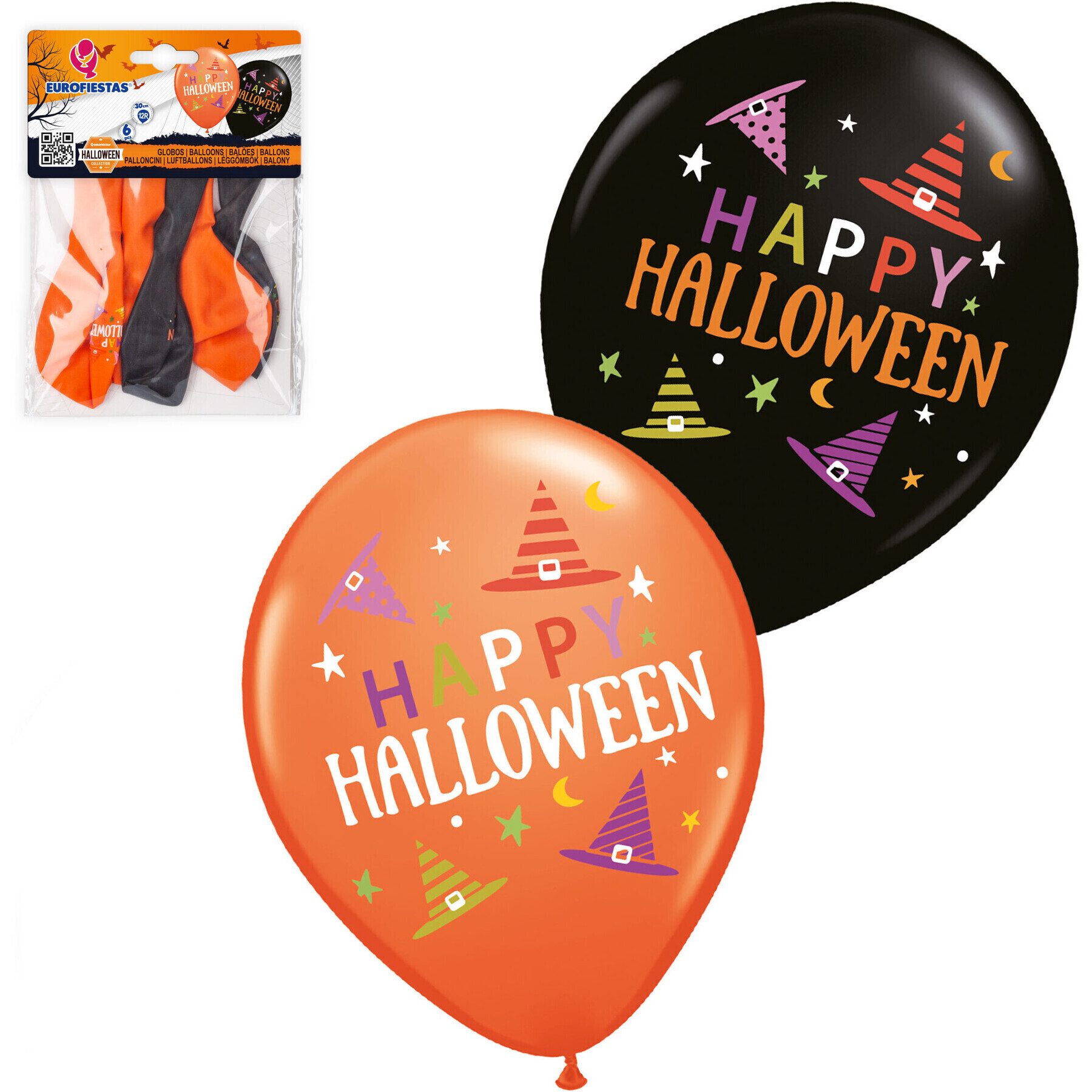 Latex ballonnen "Happy Halloween" met heksenhoeden van 30 cm - 6 stuks