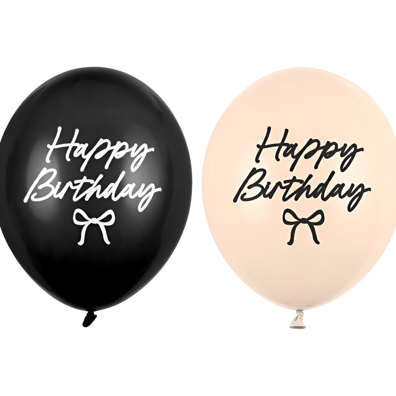 "Happy Birthday"-ballonnen met strikje, ontworpen om elke viering een verfijnde uitstraling te geven. De zwarte en nude tinten zorgen voor een neutrale, elegante esthetiek die zowel bij minimalistische als meer uitgebreide decoraties past. De dubbelzijdige bedrukking garandeert zichtbaarheid van de tekst vanuit elk perspectief en de royale maat zorgt voor aanwezigheid in boeketten, decorstukken en photocalls.