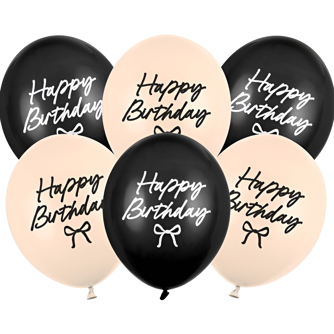 Strong balloons Happy Birthday Bows biedt een ingetogen, moderne uitstraling in zwart en nude, ontworpen voor volwassen vieringen. De ballonnen zijn bedrukt met "Happy Birthday" en een strikje dat een verfijnd, fotogeniek accent toevoegt. Dankzij de neutrale kleuren zijn ze makkelijk te combineren met andere decoraties om een moderne, stijlvolle sfeer te creëren. Perfect voor tafeldecoraties, photobooths en speciale fotoplekken bij intieme of formele feesten.