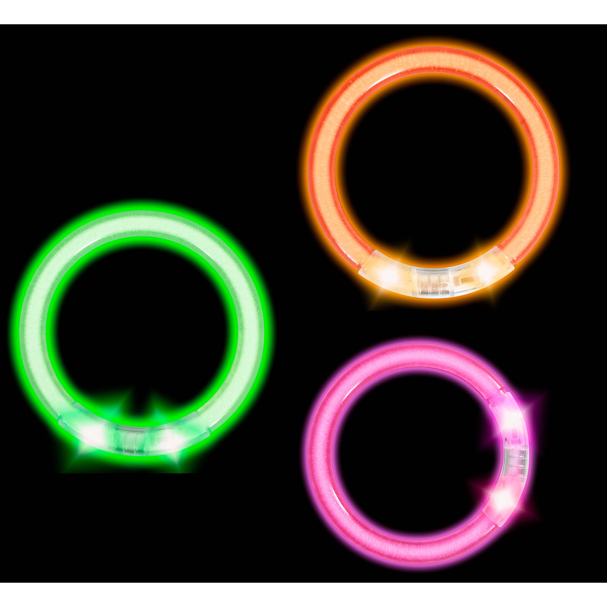 - Set van 4 polsbandjes in assorti kleuren voor een afwisselend lichteffect.