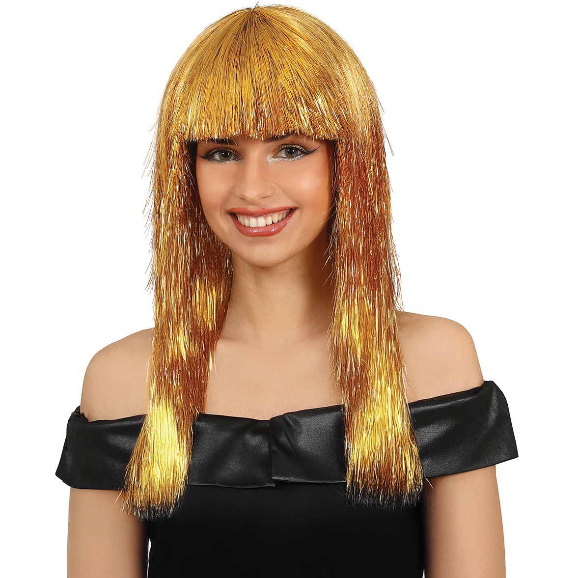 Verander direct van uiterlijk met deze Cleopatra-pruik met lang, steil haar en een rechte pony.