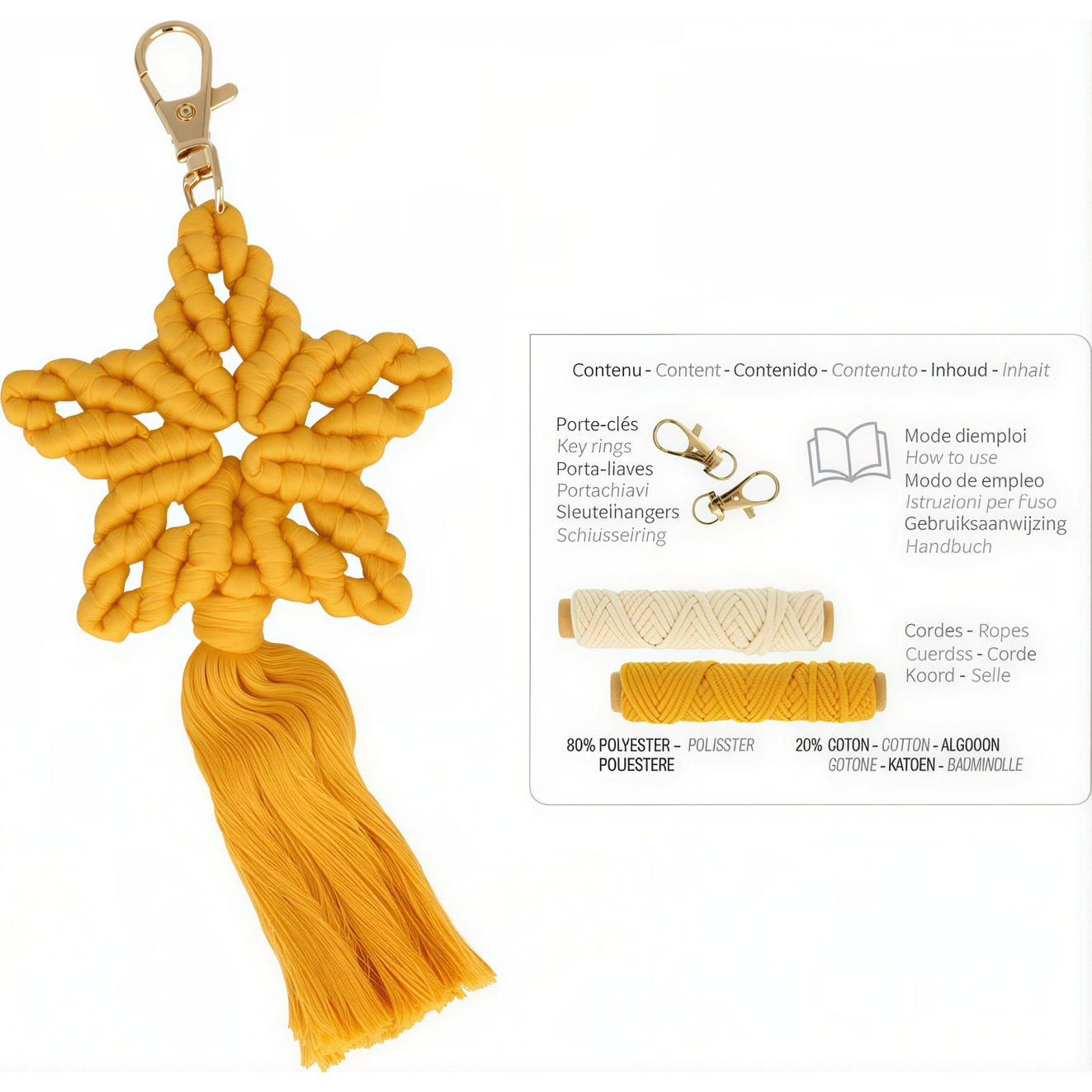 No es un juguete: contiene piezas pequeñas (portallaves, anillas, mosquetones) que pueden provocar asfixia; no apto para menores de 36 meses.
