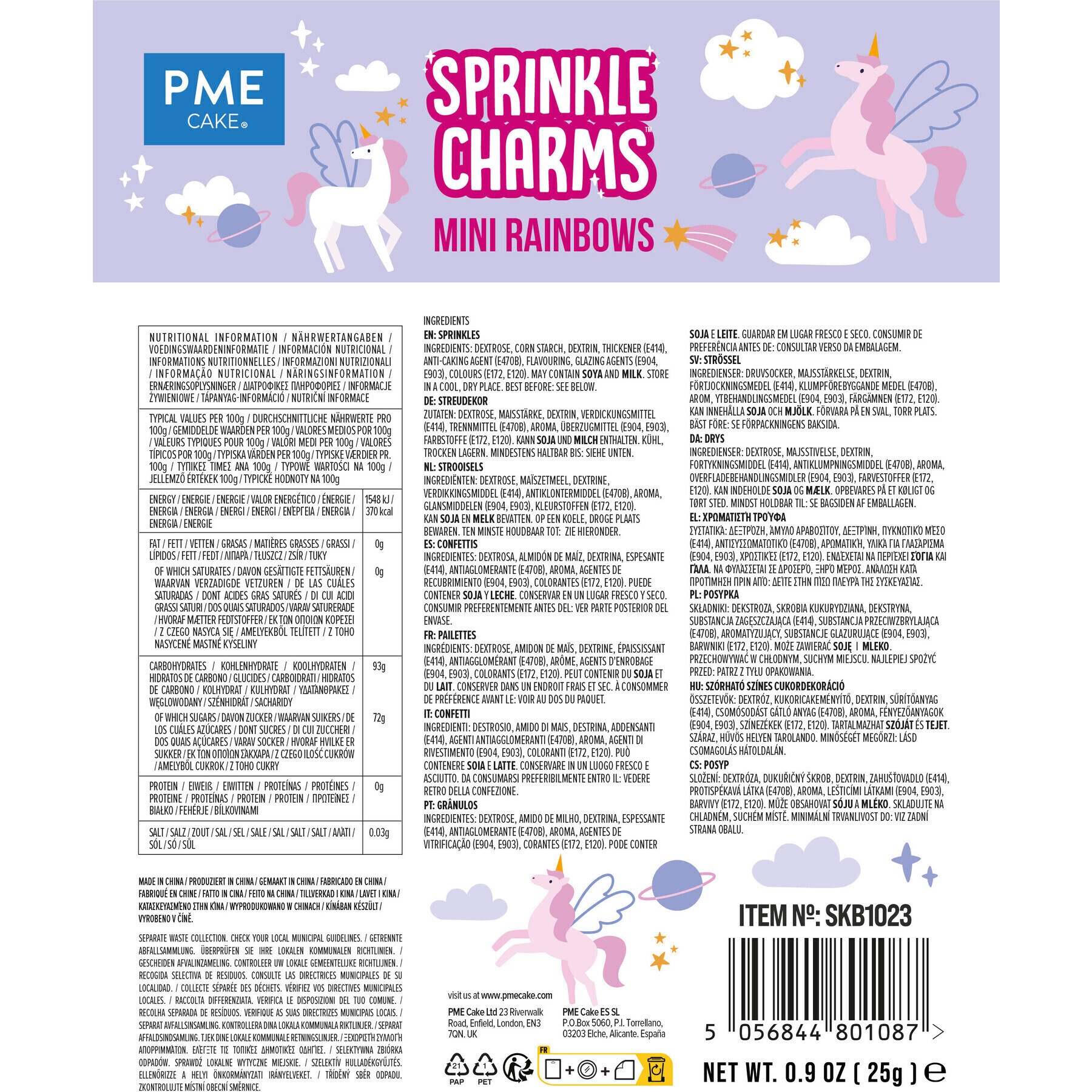 Ingrediënten: dextrose, maïszetmeel, dextrine, verdikkingsmiddel (E414), antiklontermiddel (E470B), smaakstof, glansmiddelen (E904, E903), kleurstoffen (E172, E120).