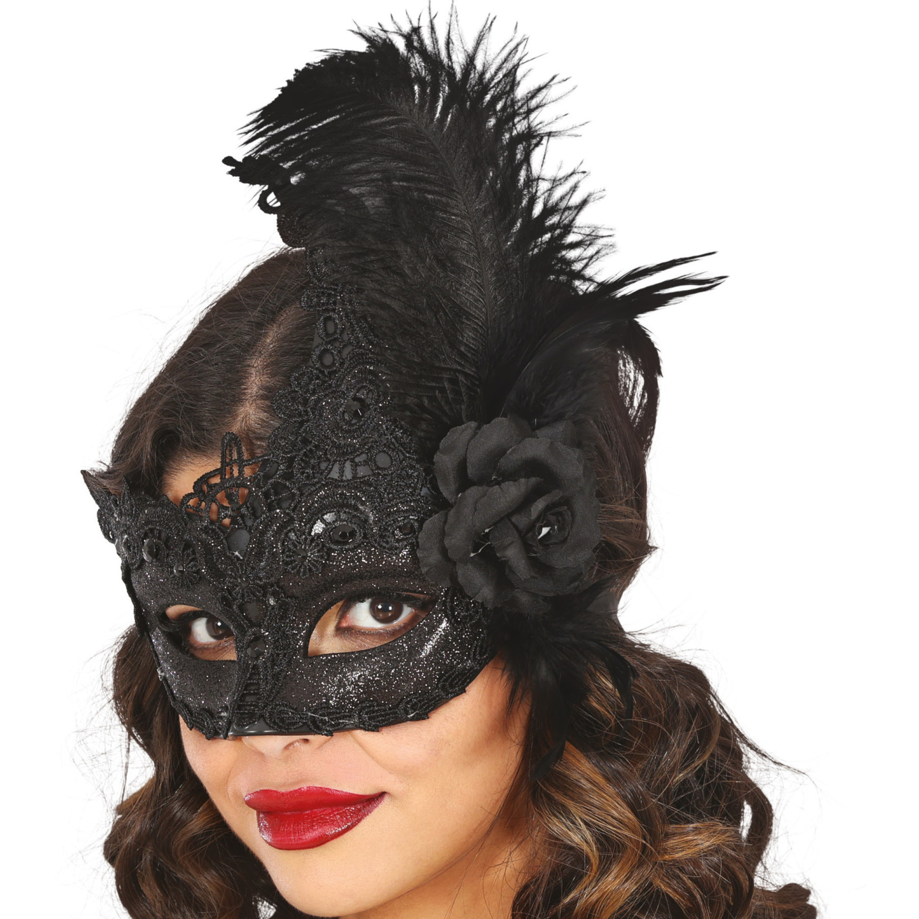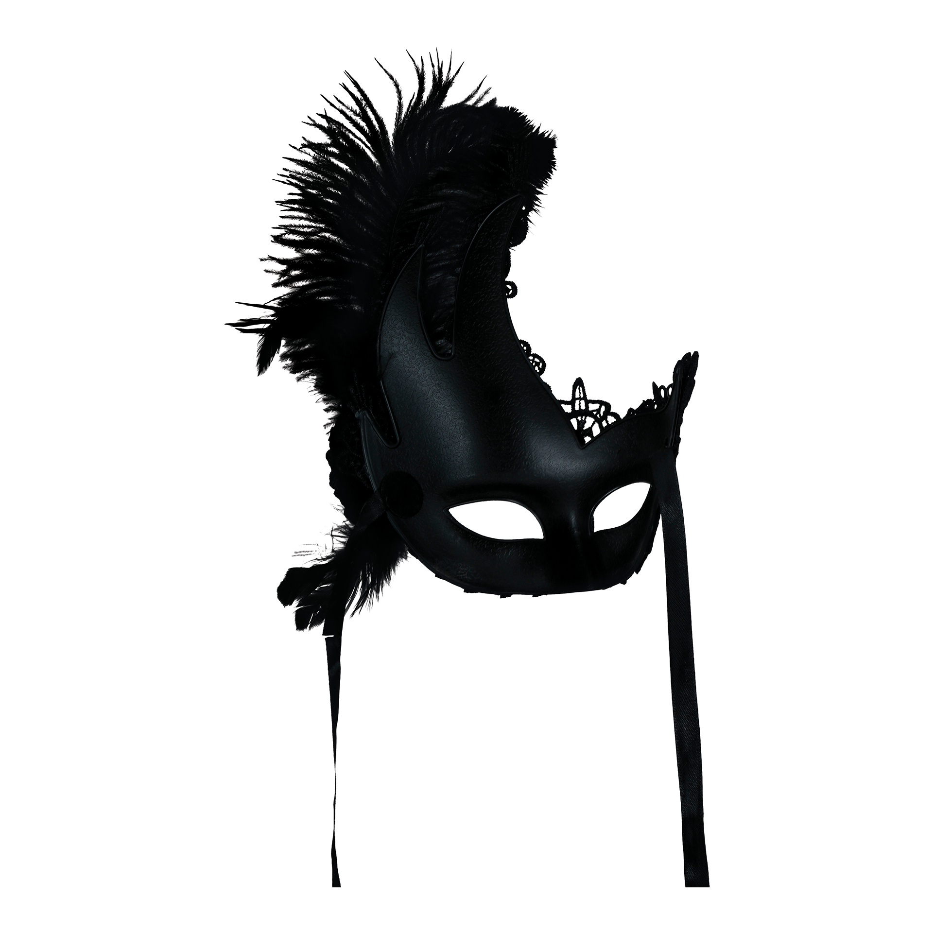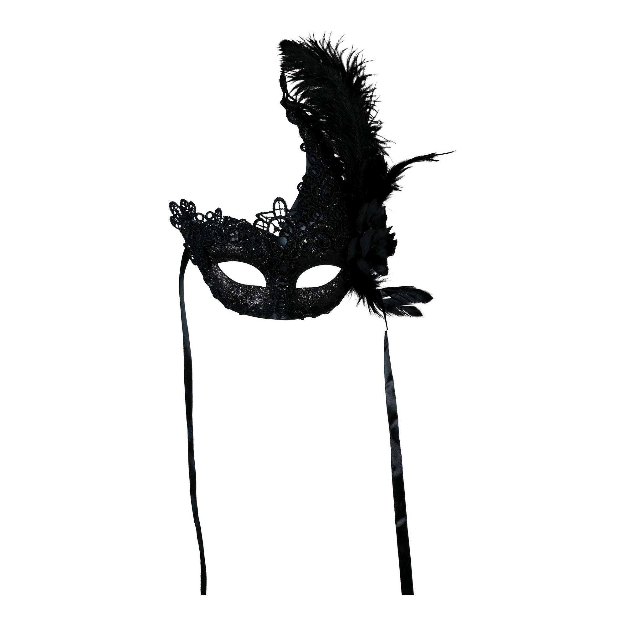 Masker met zwart kant en veren