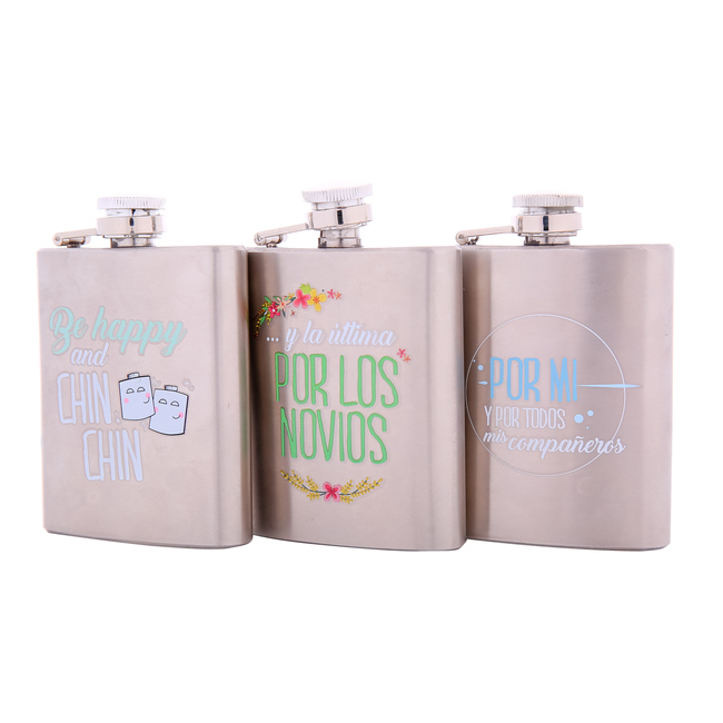 Metalen heupfles met assorti spreuken voor bruiloften - 1 stuk