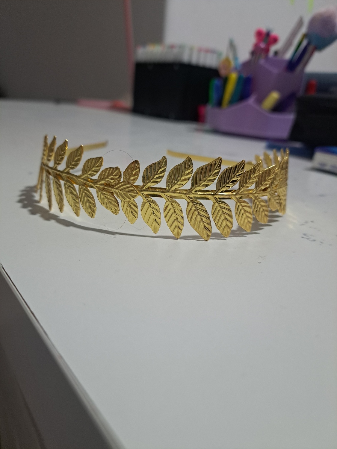 Je kunt het zowel als een diadeem dragen als aan de voorkant als kroon, en het is ideaal om Romeinse verkleedkostuums compleet te maken.
