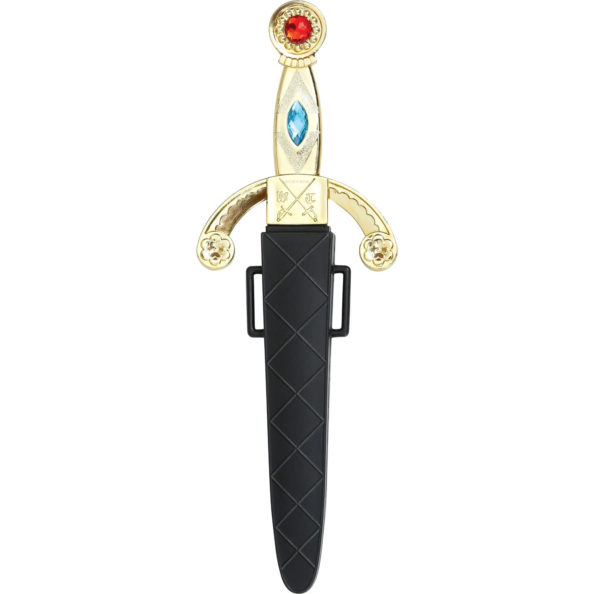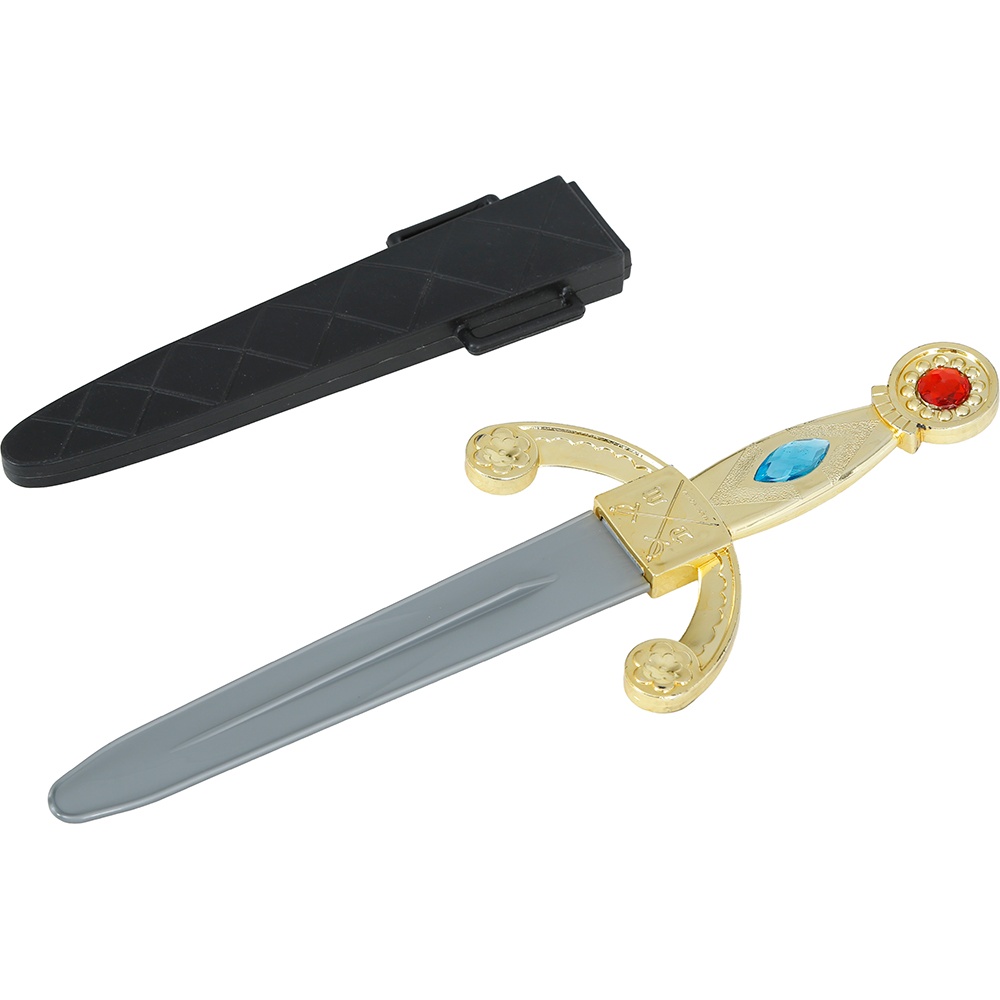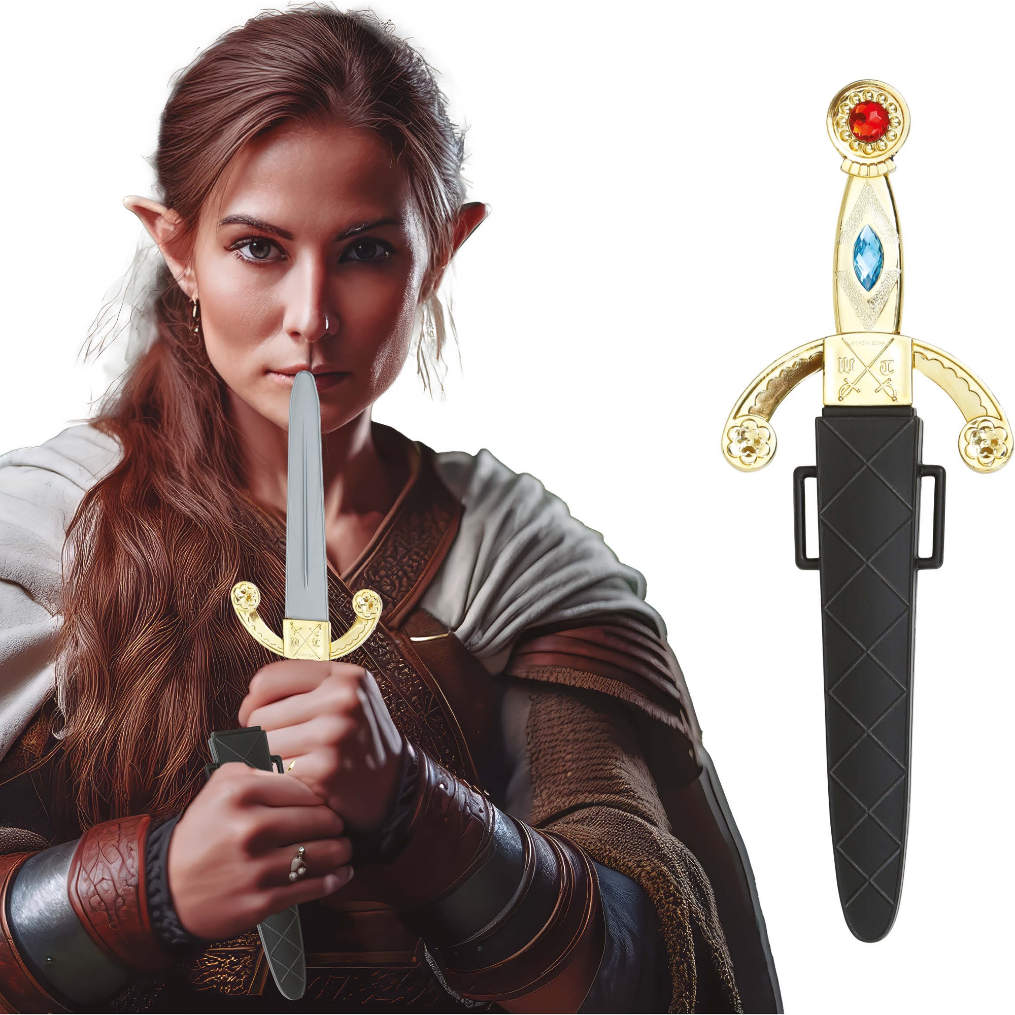 Perfecte toevoeging om je middeleeuwse of fantasykostuum compleet te maken. Deze PVC-dolk heeft een realistisch uiterlijk met een sierlijk handvat en gouden details, maar blijft veilig dankzij het niet-geslepen lemmet. De schede geeft een authentieke afwerking en maakt het meenemen tijdens evenementen en cosplay-sessies eenvoudig.