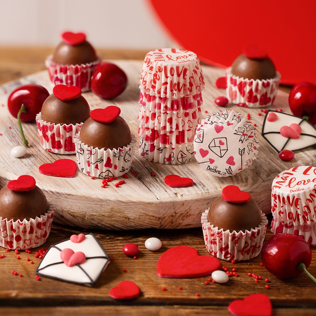 Mini papieren vormpjes met hartjes voor bonbons - Decora - 100 stuks