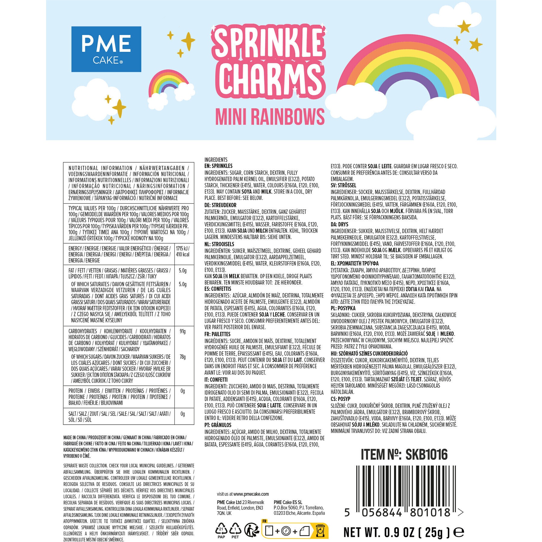 Ingrediënten: suiker, maïszetmeel, dextrine, volledig gehydrogeneerde palmkernolie, emulgator (E322), aardappelzetmeel, verdikkingsmiddel (E415), water, kleurstoffen (E160A, E100, E120, E133).