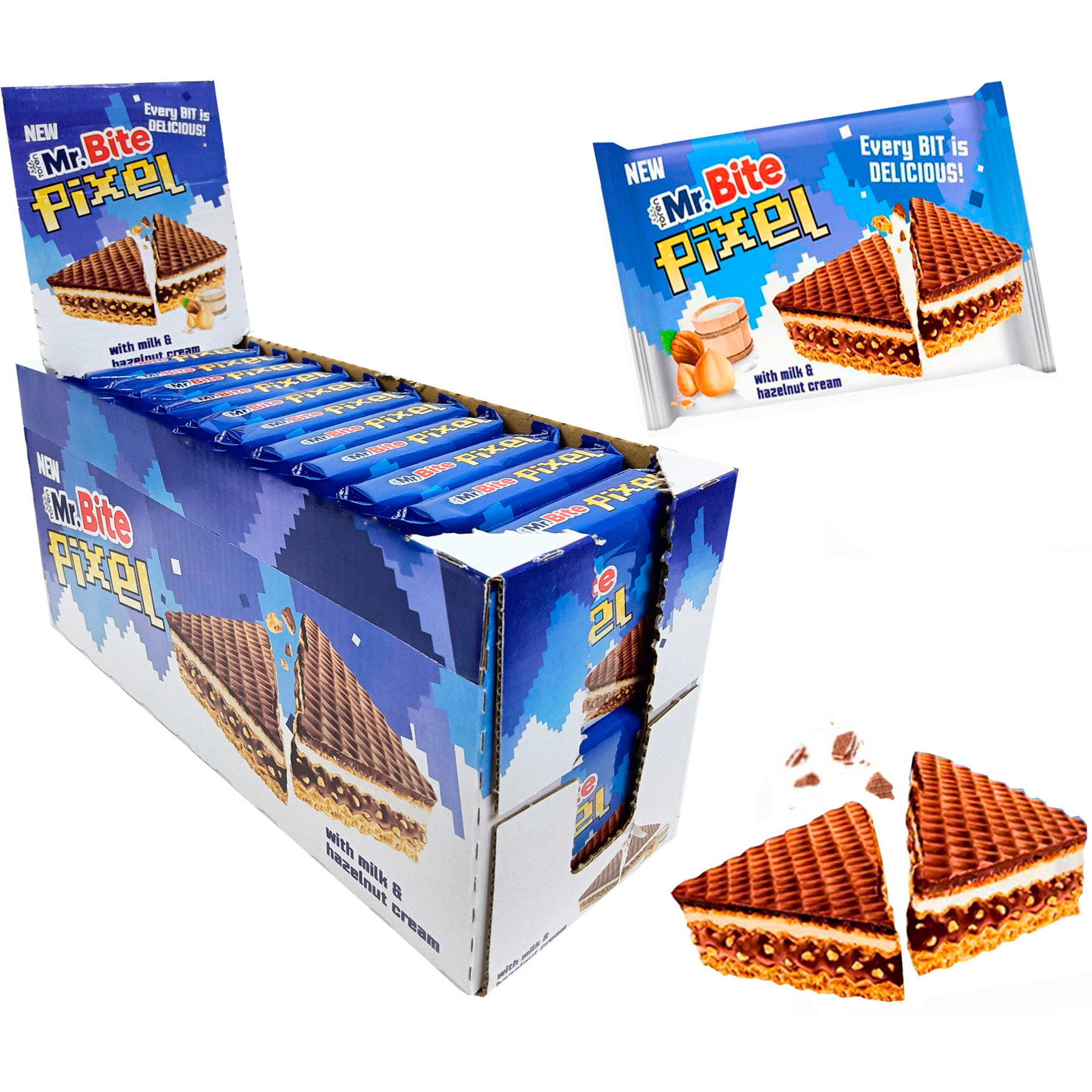Mr Bitel Pixel van chocolade met hazelnootcrème van 30 gr - 24 stuks