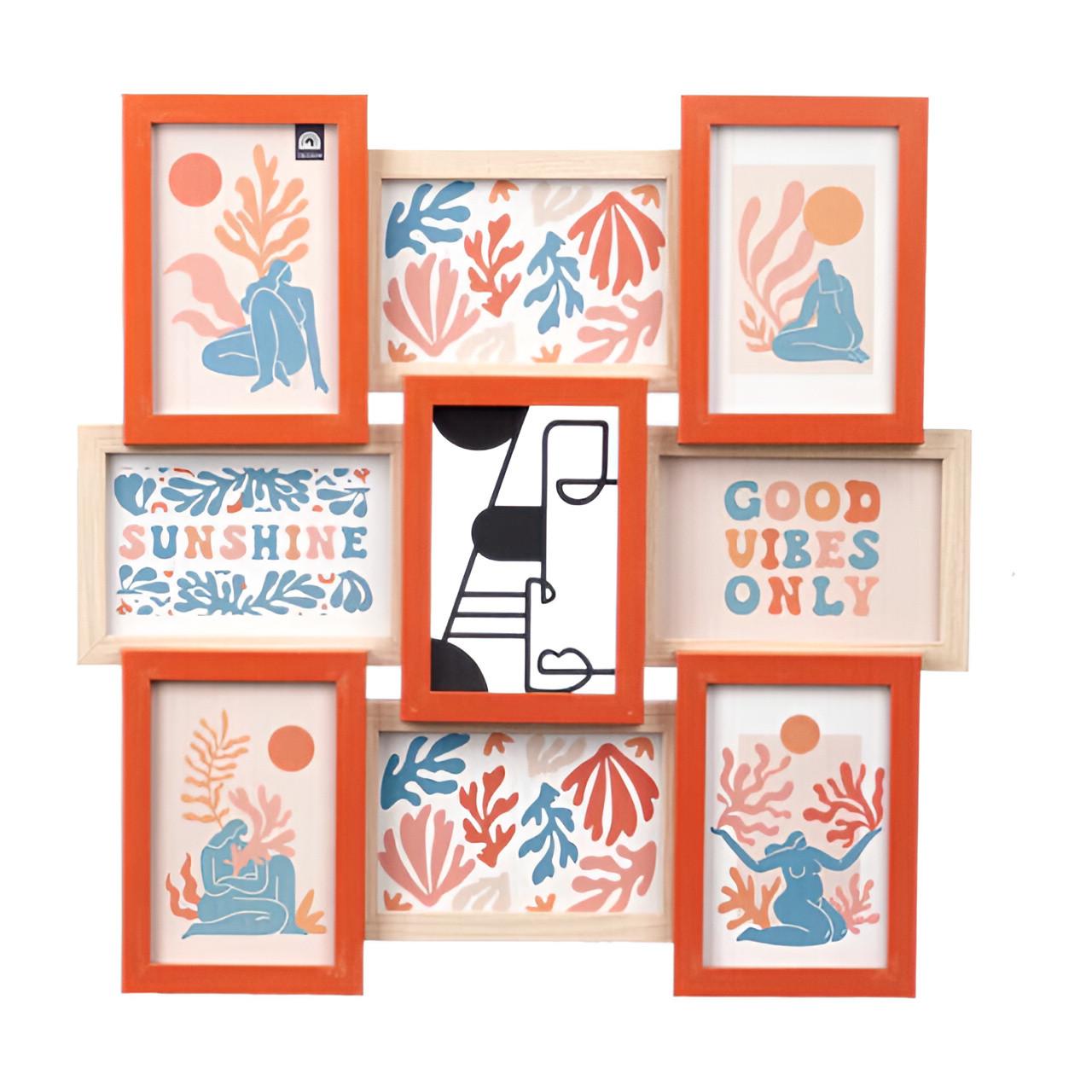 Multicolor fotolijst met metalen detail voor 8 foto's (10 x 15 cm)