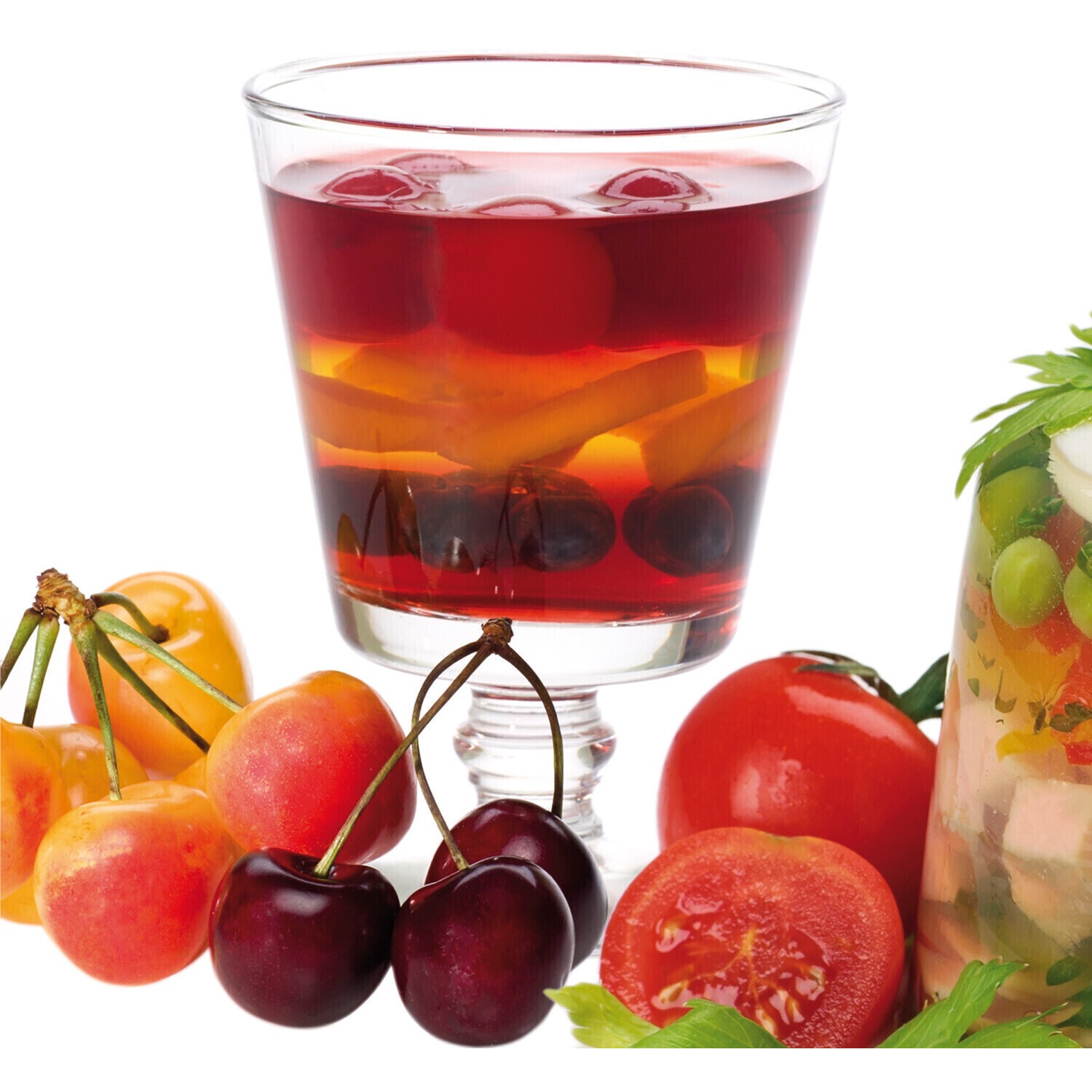 - Ideaal voor fruit, groenten, vlees en vis in gelatine.