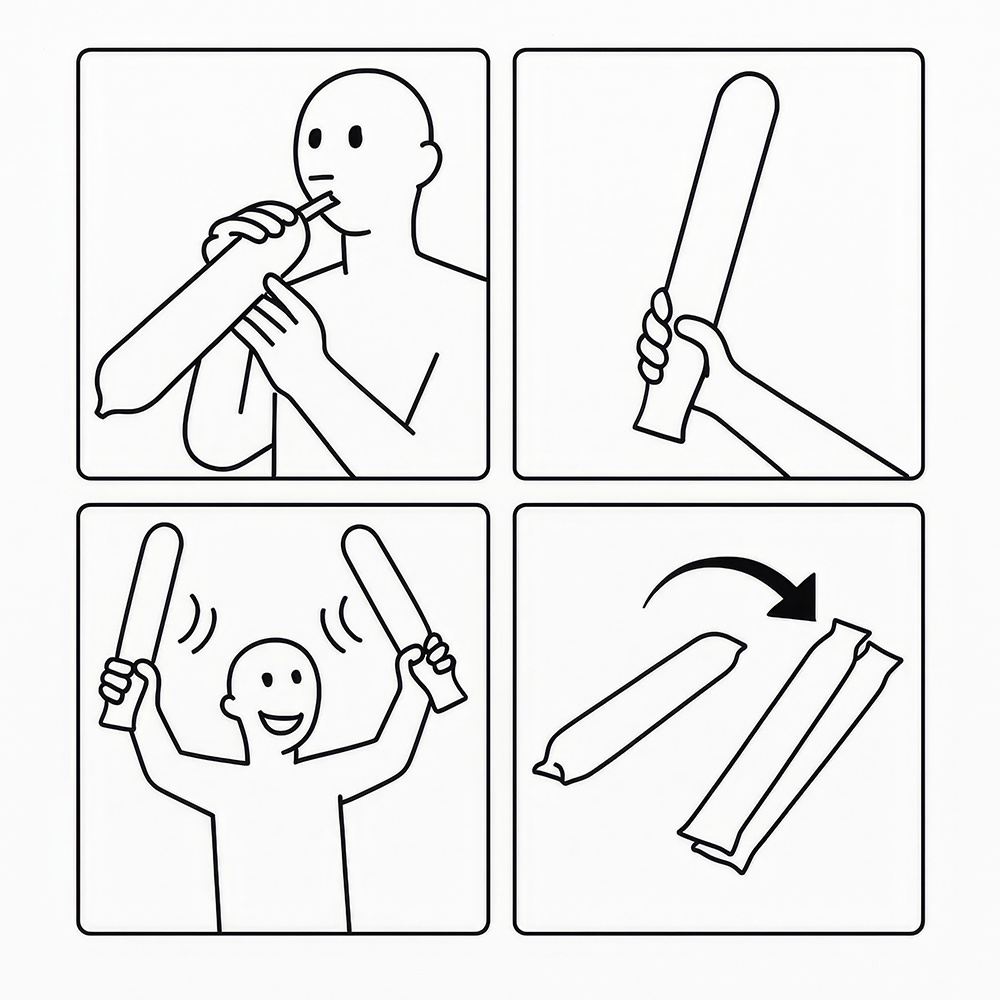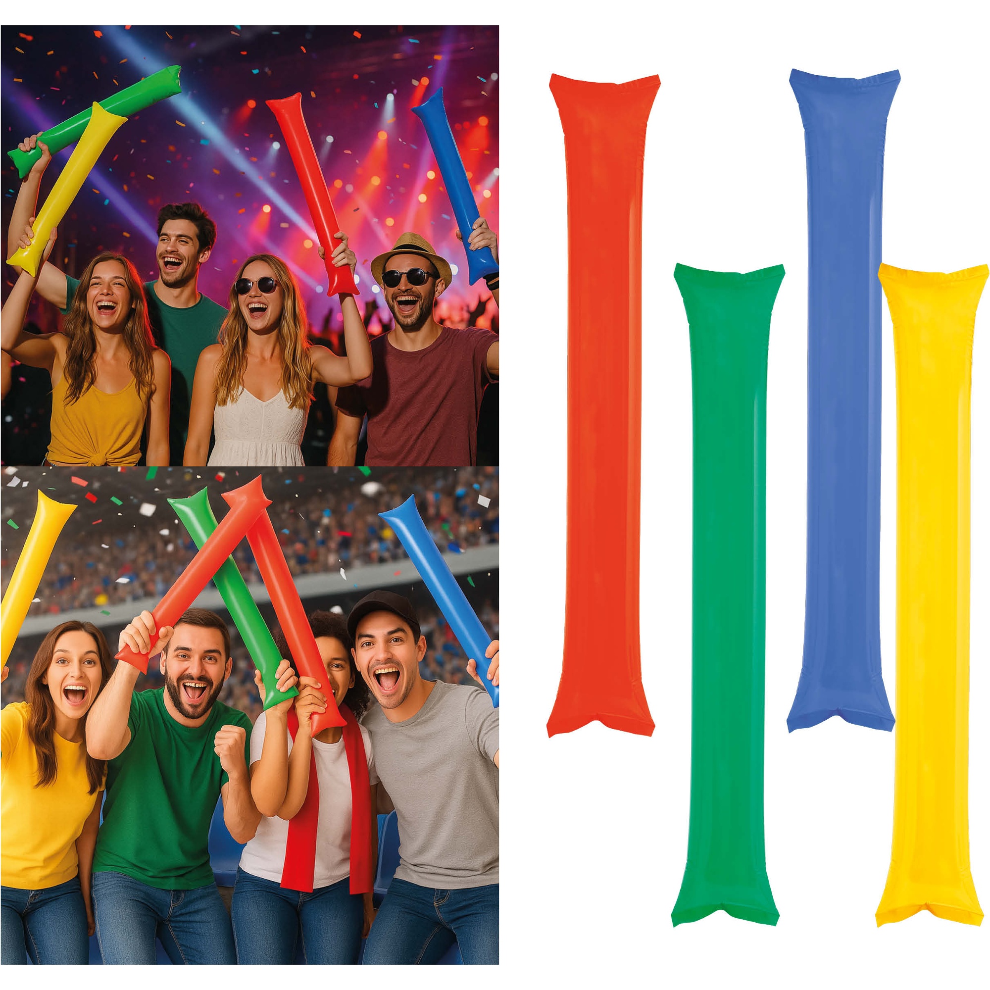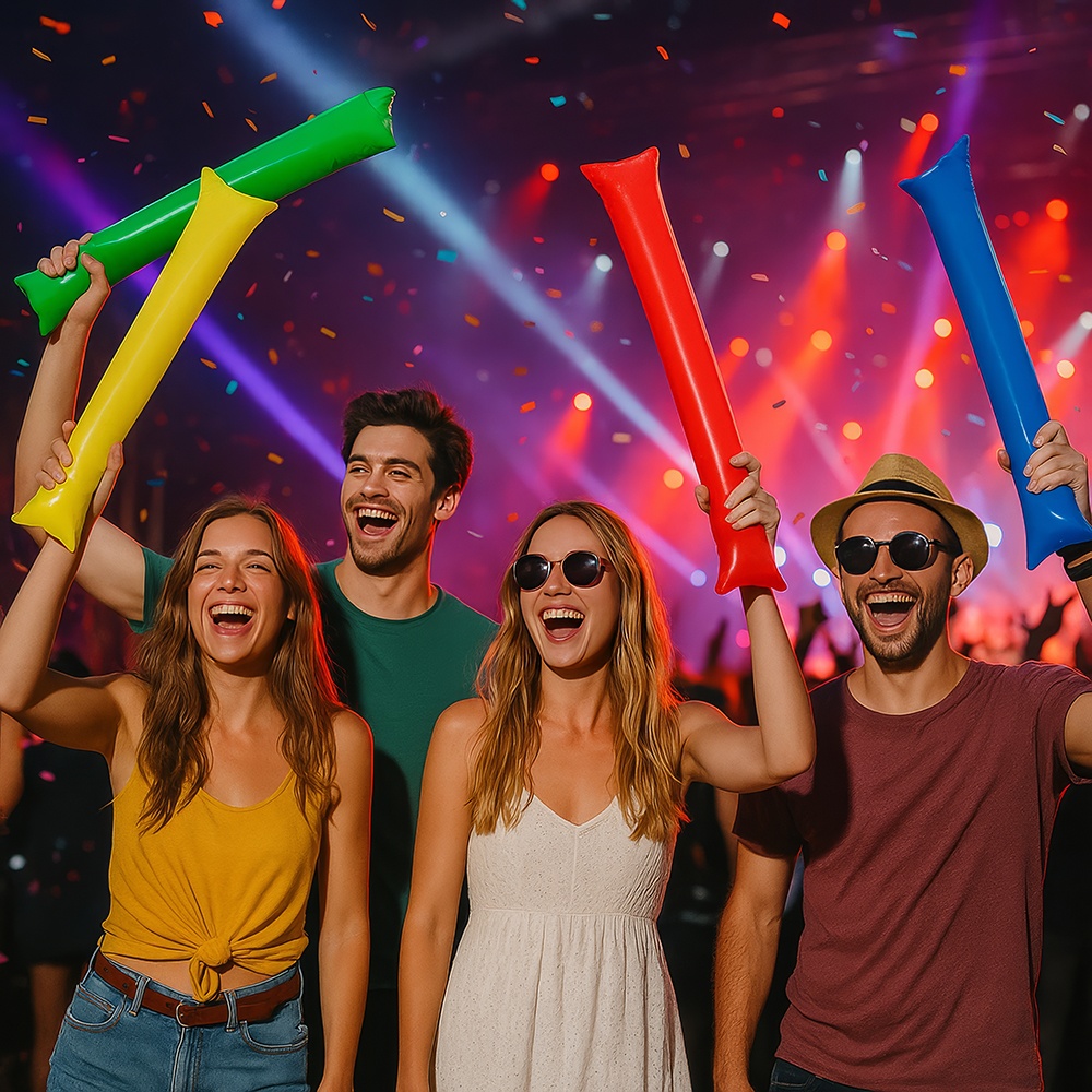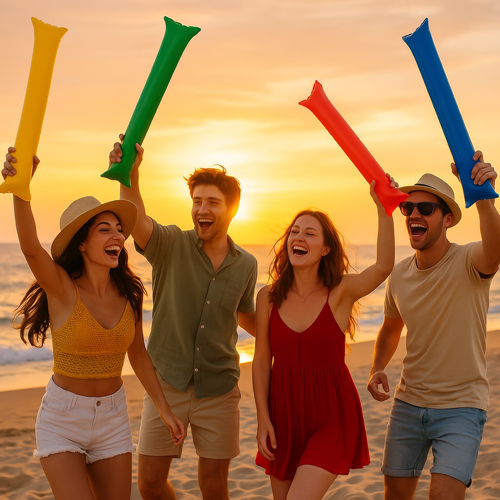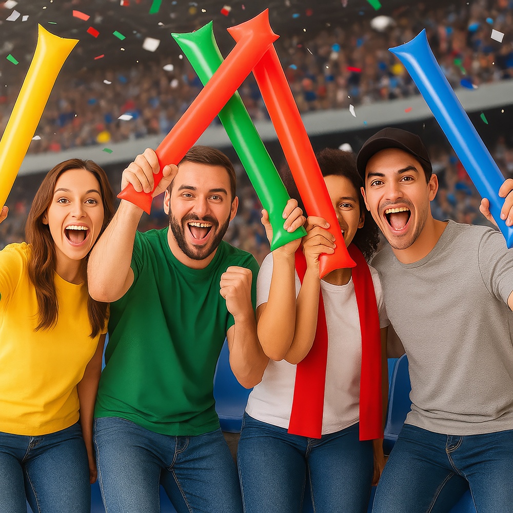 Breng extra sfeer in wedstrijden en feesten met deze opblaasbare klapstokken in diverse kleuren. Ontworpen om een gezellige ambiance te creëren en een opvallend geluid te produceren bij het tegen elkaar slaan, perfect voor stadions, supportersclubs, concerten en partijen. Ze zijn snel opgeblazen, licht van gewicht en duurzaam, zodat je ze gedurende het hele evenement gemakkelijk kunt gebruiken en opnieuw inzetten.