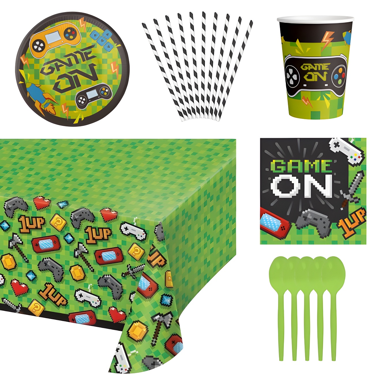 Het is een pakket met alles wat je nodig hebt om van een videogame-themafeest te genieten.