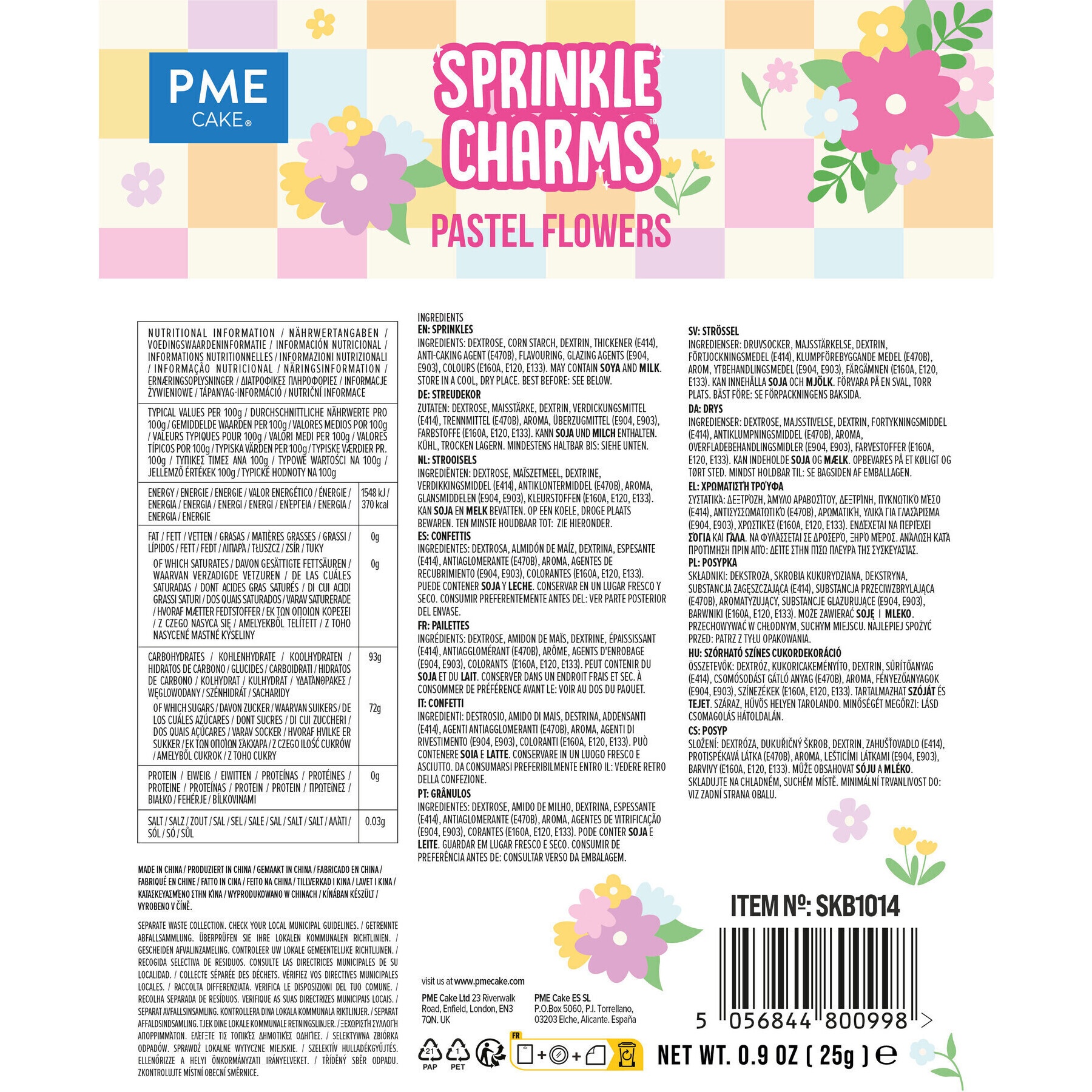 Ingrediënten: dextrose, maïszetmeel, dextrine, verdikkingsmiddel (E414), antiklontermiddel (E470B), aroma, glansmiddelen (E904, E903), kleurstof (E160A, E120, E133).