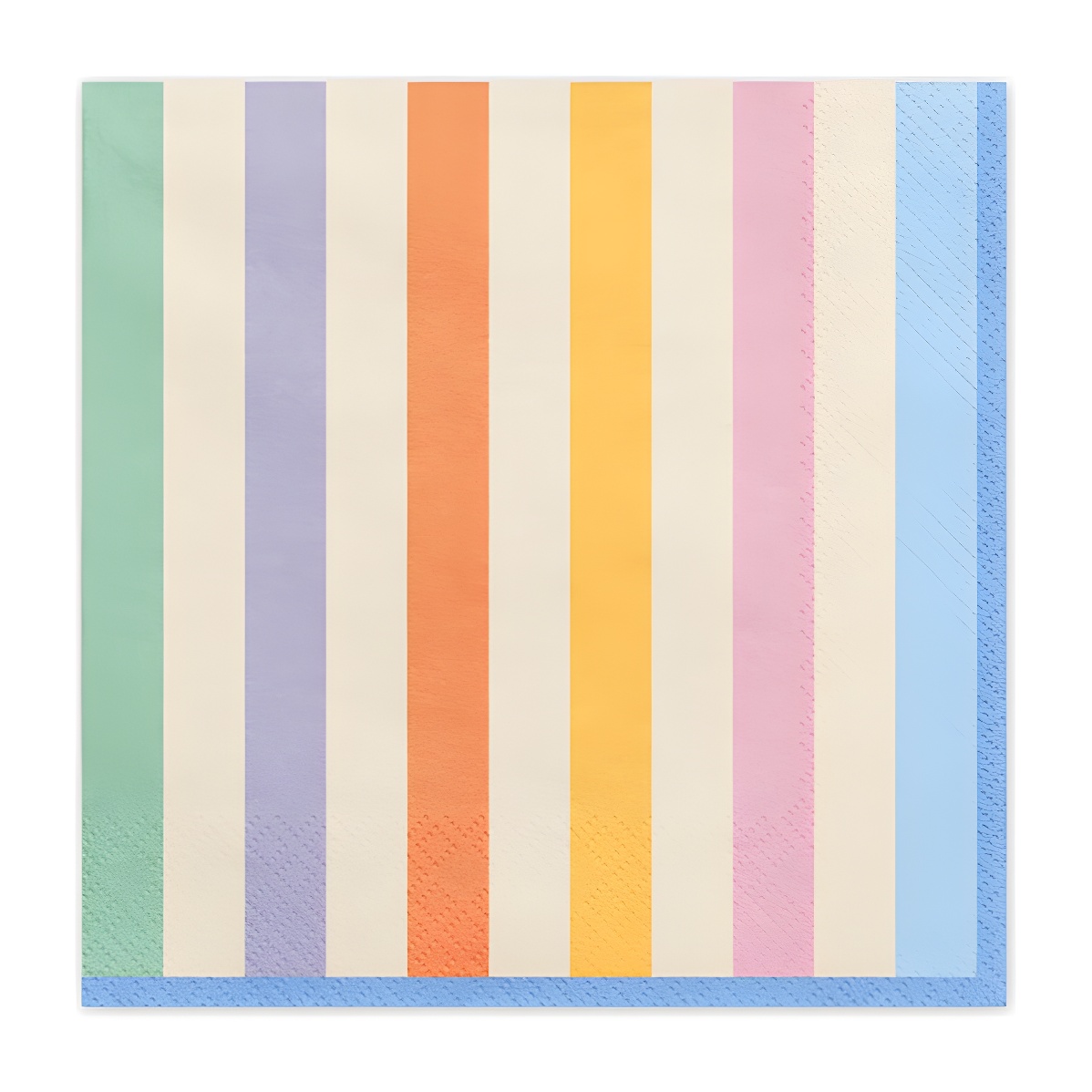 Papieren servetten met een vrolijk gestreept dessin in pastel- en felle kleuren, ontworpen om kinderdecoraties stijlvol af te maken. Ze zijn 2-laags voor een zacht aanvoelen en betere absorptie. Afmeting uitgeklapt: 33 x 33 cm; opgevouwen: 16,5 x 16,5 cm. Geleverd in een handig pak, perfect om thematafels te dekken.