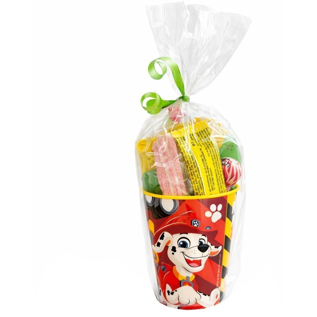 Ingrediënten lolly: suiker, glucosestroop, citroenzuur (E330), aroma's en kleurstoffen (E100, E160c, E120 of E163, E141, E150d).